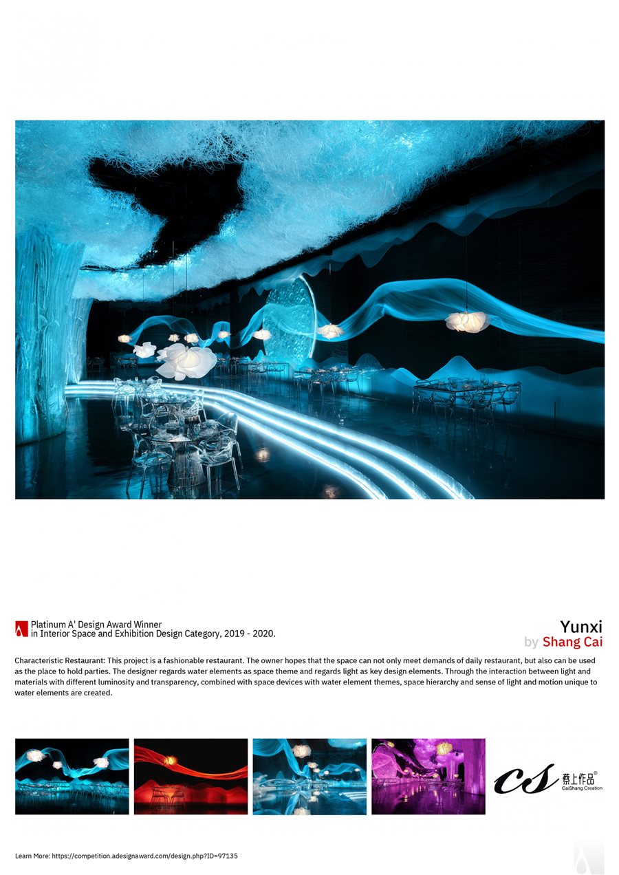 世界顶尖设计大奖:意大利A‘DESIGN AWARD公布了2020年度获奖名单,云兮概念餐厅幸运地获得了最高奖:铂金奖(全球共12席)。另一个宴会设计作品《云图》获得金奖。在此感谢甲方对我这个任性的设计师的支持和包容,感谢工作室的所有小伙伴们,也感谢所有关注和支持我的人们。