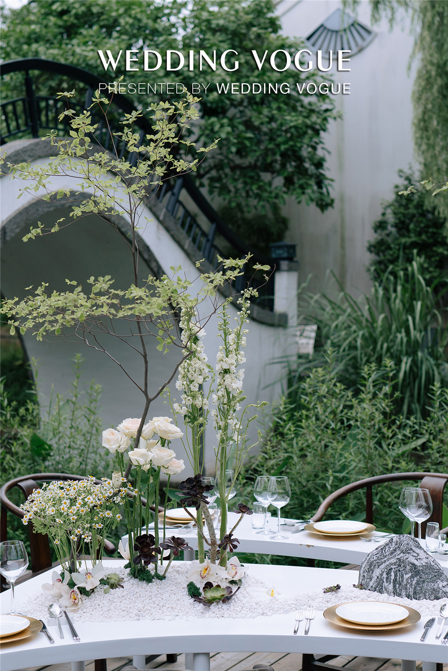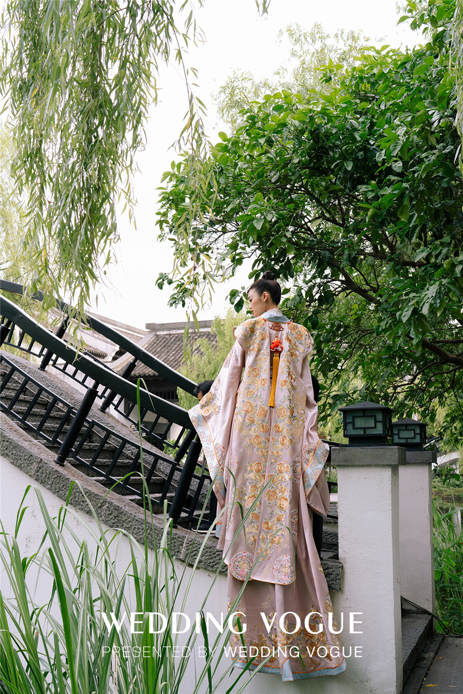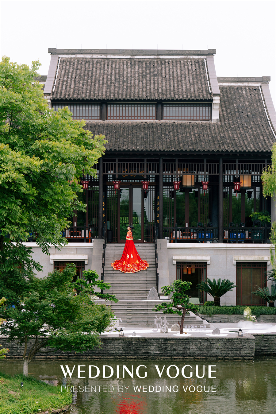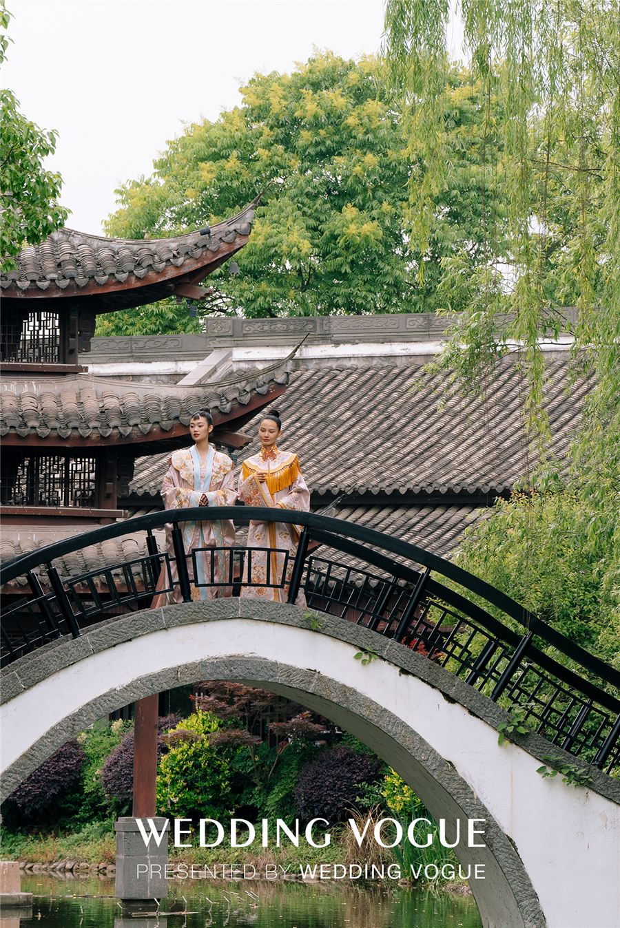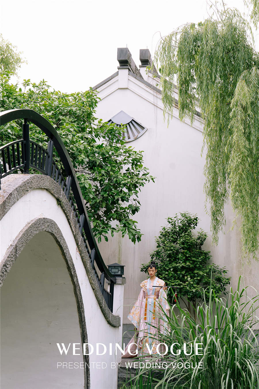 天色渐暗,古色古韵的西溪悦榕庄水台上演了一出主题国风大赏。烟雾流光笼罩着小桥流水、亭台楼阁,穿着新式国风礼服的“新娘们“由拱桥缓缓走到亲水平台,一对新人从桥下乘摇橹船向宾客驶来,如梦如幻,令人惊叹。