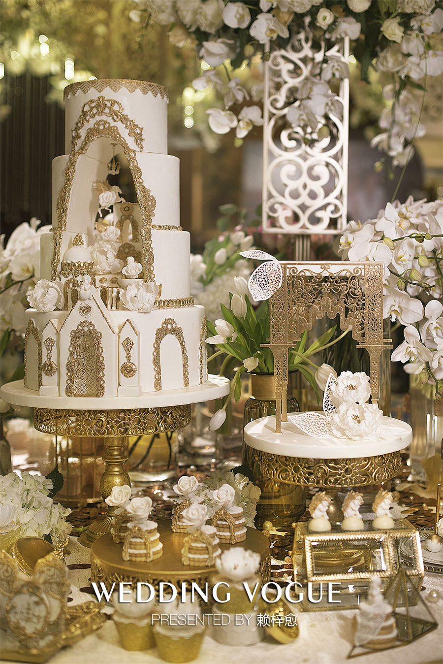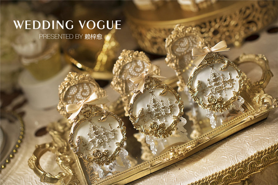 配合整体的华美感,赖梓愈配合做了很多周边的设计,比如舞台玻璃花台,以及匹配的甜品桌设计等等。让古典的气息中也有别样的质感。