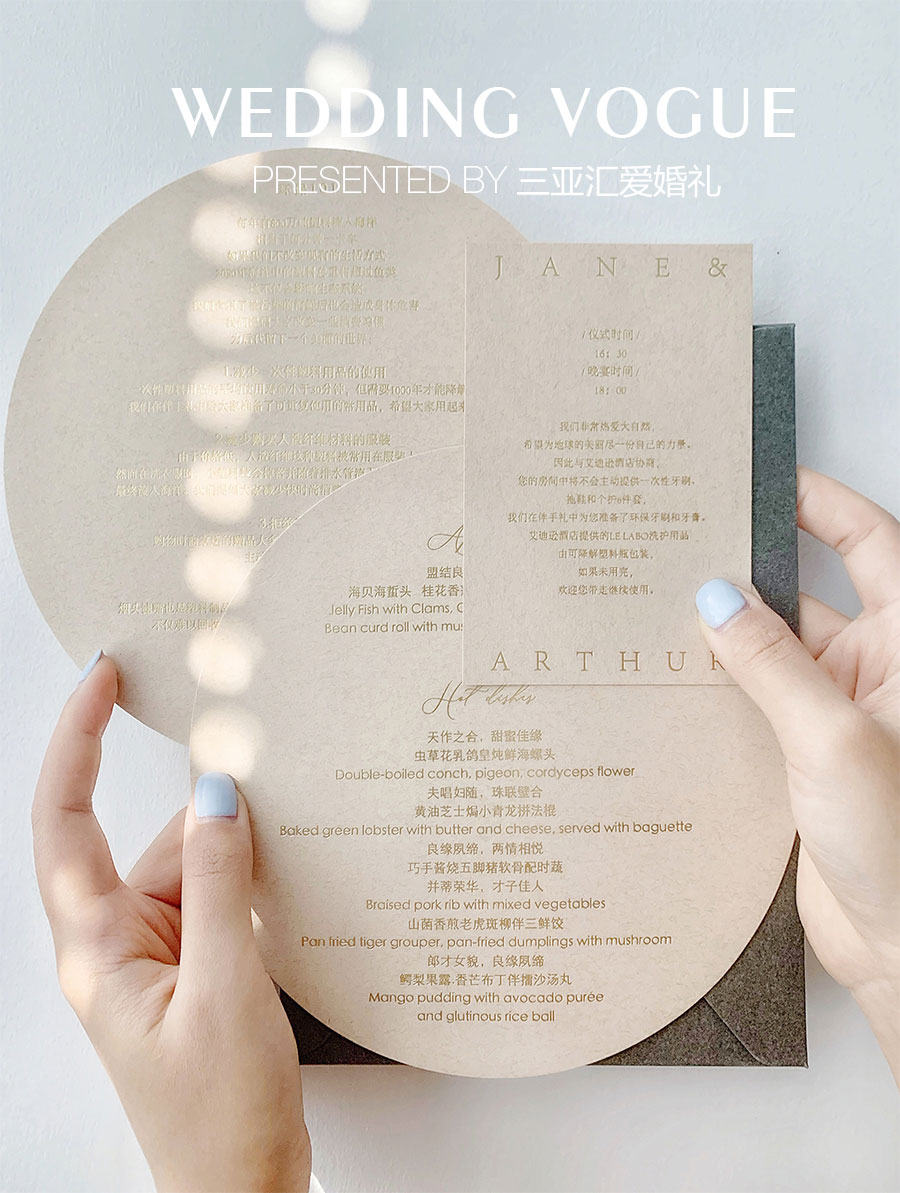 请柬等一应纸品,均选用牛皮纸等一众环保材料制作。
