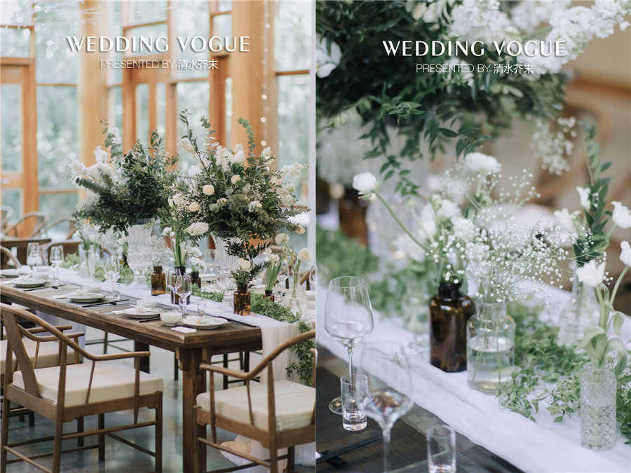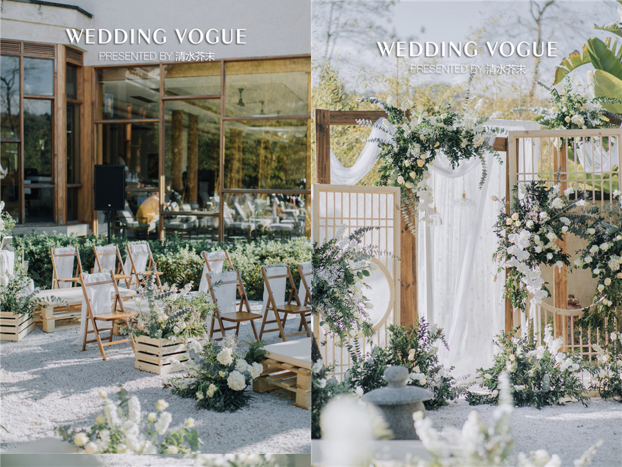 自然新中式的户外仪式区和带有韵味的柏联酒店建筑环境相融合,西式的自助餐桌形式和古老的中式家具也相得益彰。