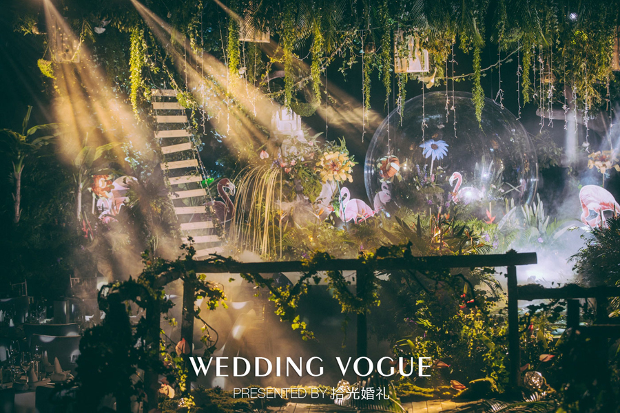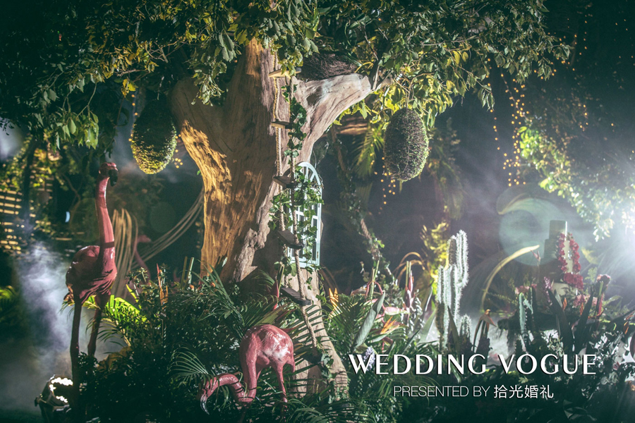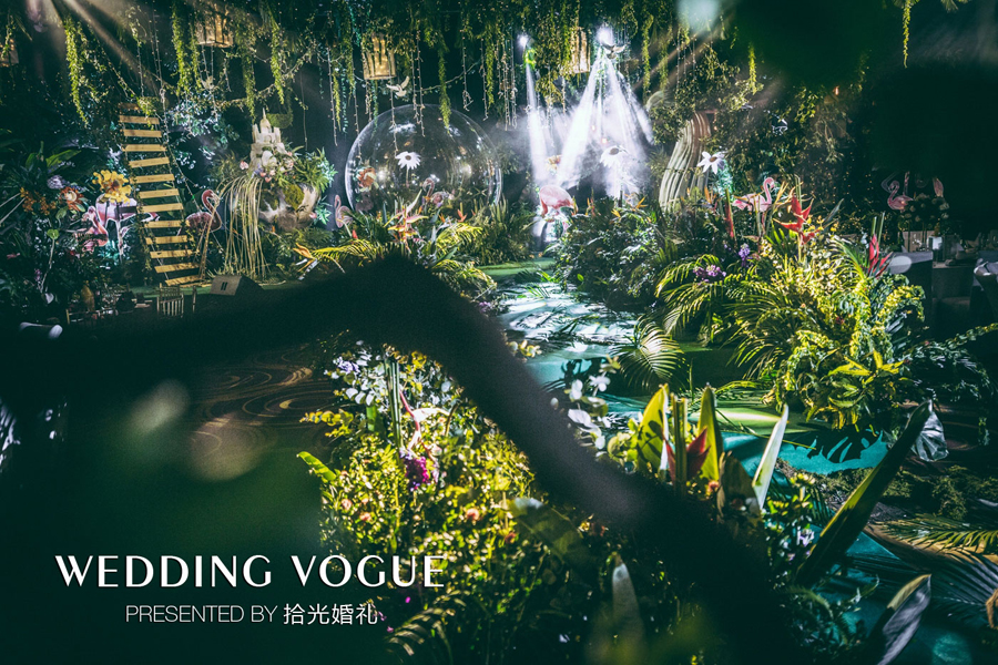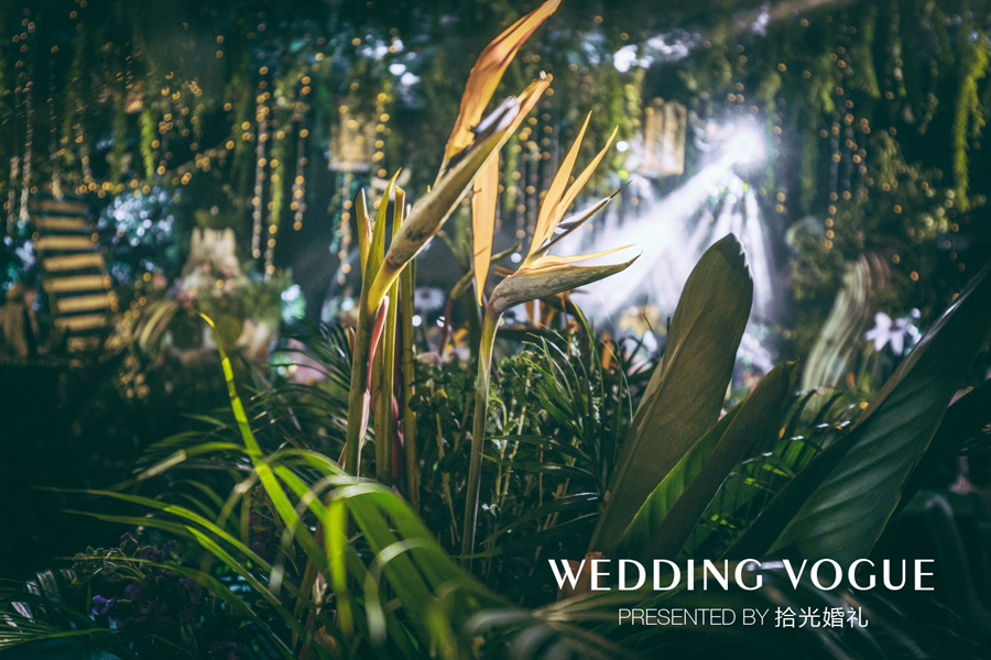 不知你是否到过热带雨林,这块被称为“地球之肺”的宝地,总引来人们对它无名向往。而这次,拾光在婚礼中人造出了一片热带雨林。