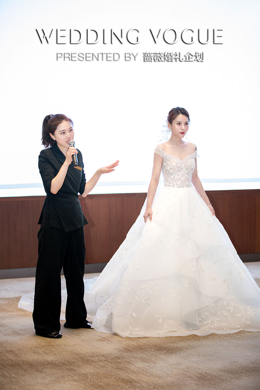 TopBridal品牌负责人介绍婚纱品牌理念,素人小姐姐现场穿着品牌婚纱展示效果,