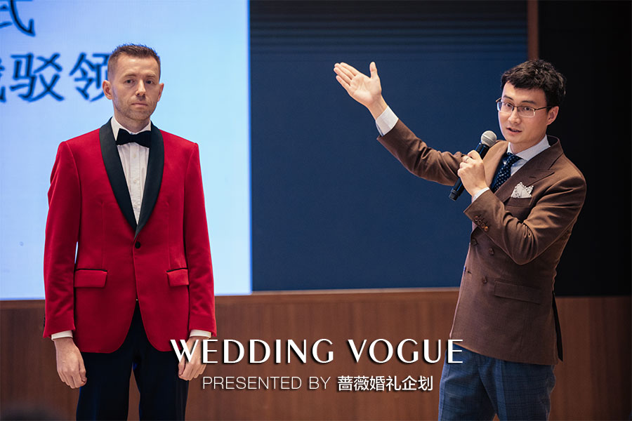 ,并请外模展示西装上身效果,让新人朋友更直观的了解怎么选择一款最适合自己的西装礼服。