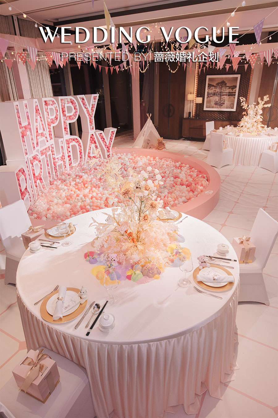 2020婚礼静态展及宝宝宴展示,契合酒店气质,打造了一个璀璨光耀的宴会氛围。
