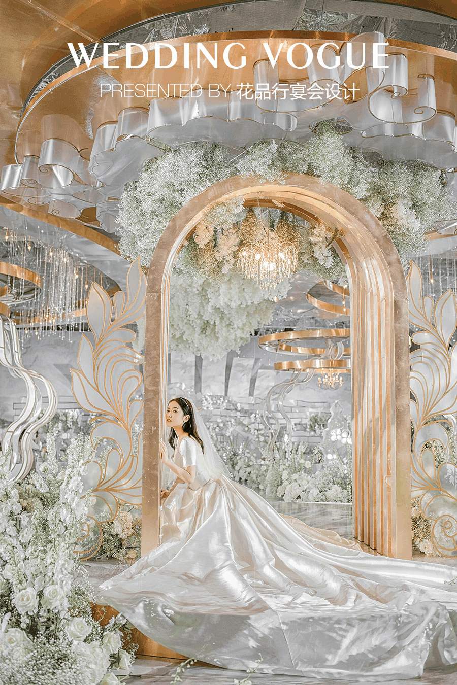 平时的pipi很活泼,想在婚礼上优雅这么一次,所以选择了当下流行且非常突出气质的白金色系。