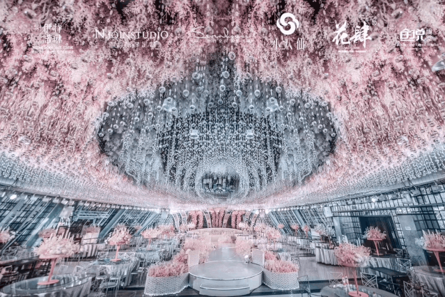 没有花艺设计或是单纯用普通小工做顶部花艺吊挂的婚礼堂,已然不足以满足当下的市场需求