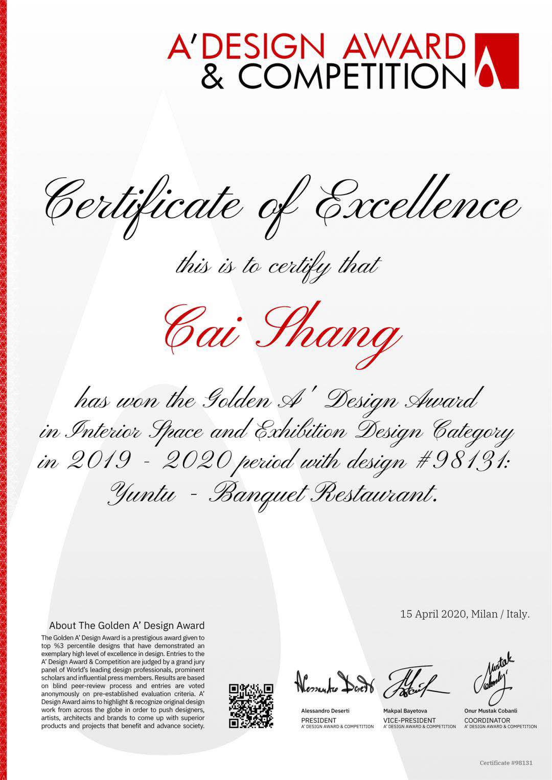 就在今年5月,蔡上获得意大利A‘Design Award国际设计最高奖:铂金奖