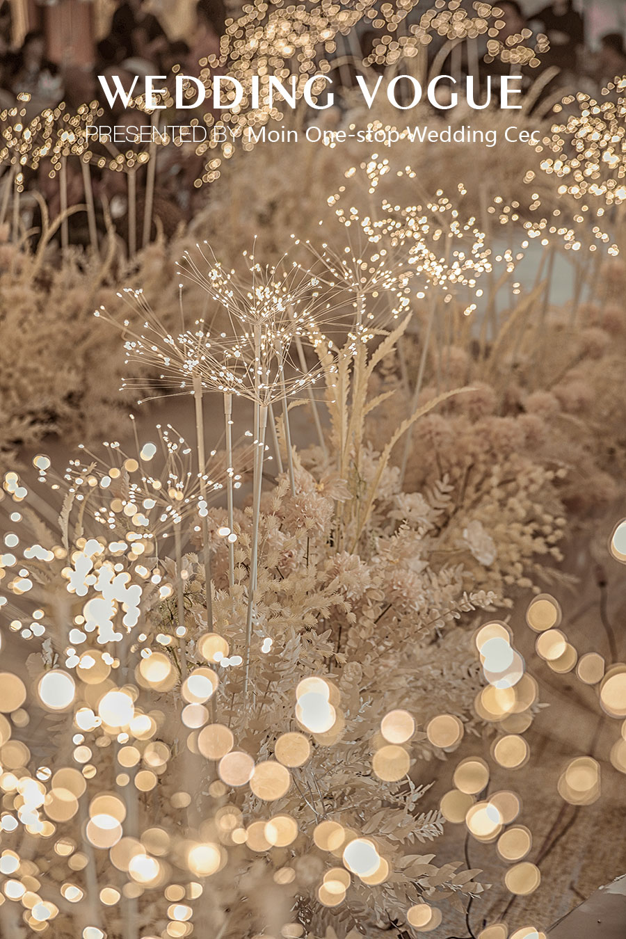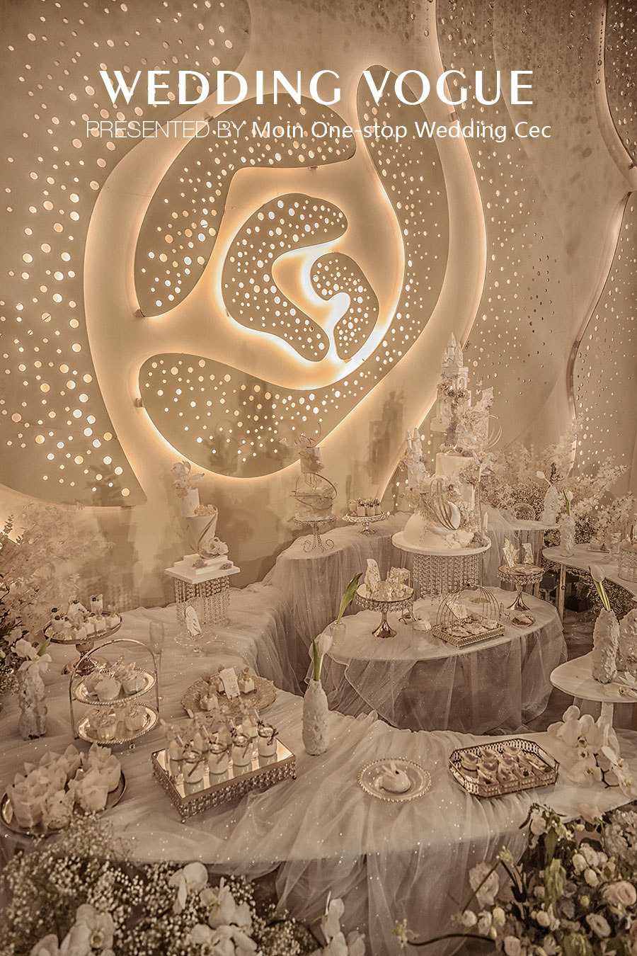这场婚礼《时光之境》的整体灵感来源于新娘的爱情观:繁花似锦觅安宁、淡云流水度此生,时光是一个很美好的词语,可以珍藏美丽的记忆。
