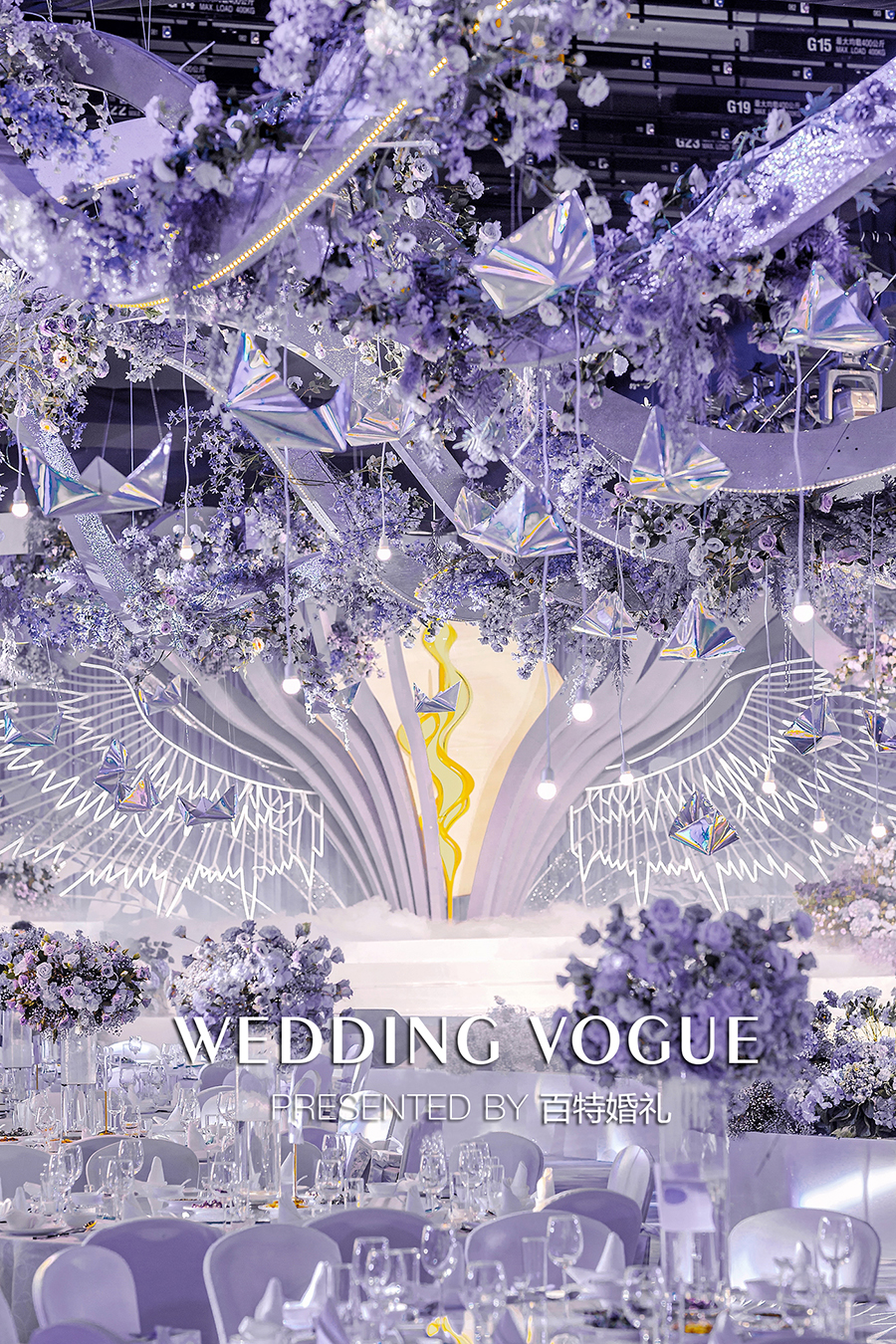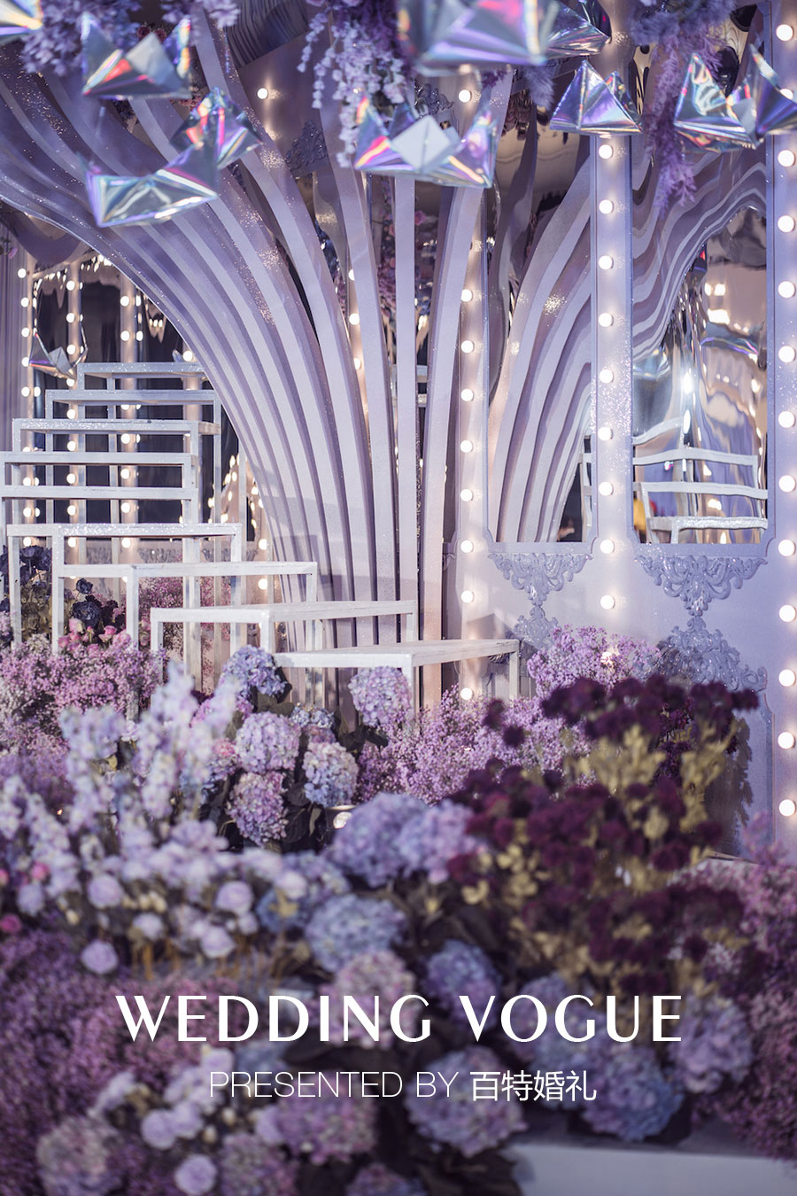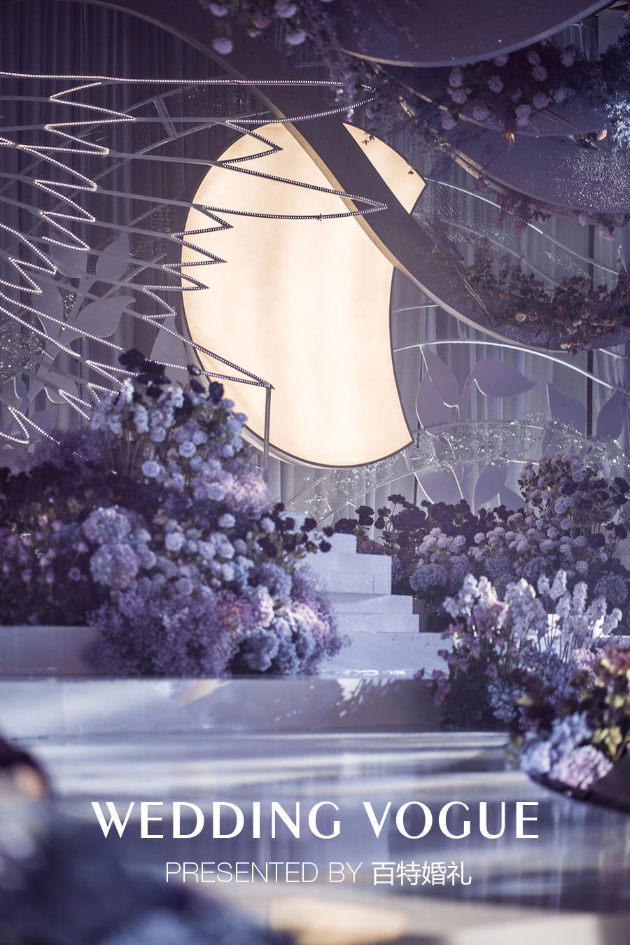 在婚礼色彩设计上,以天秤守护色紫色为基调,由冷到暖层层递进的颜色,正如情感从陌生到火热,