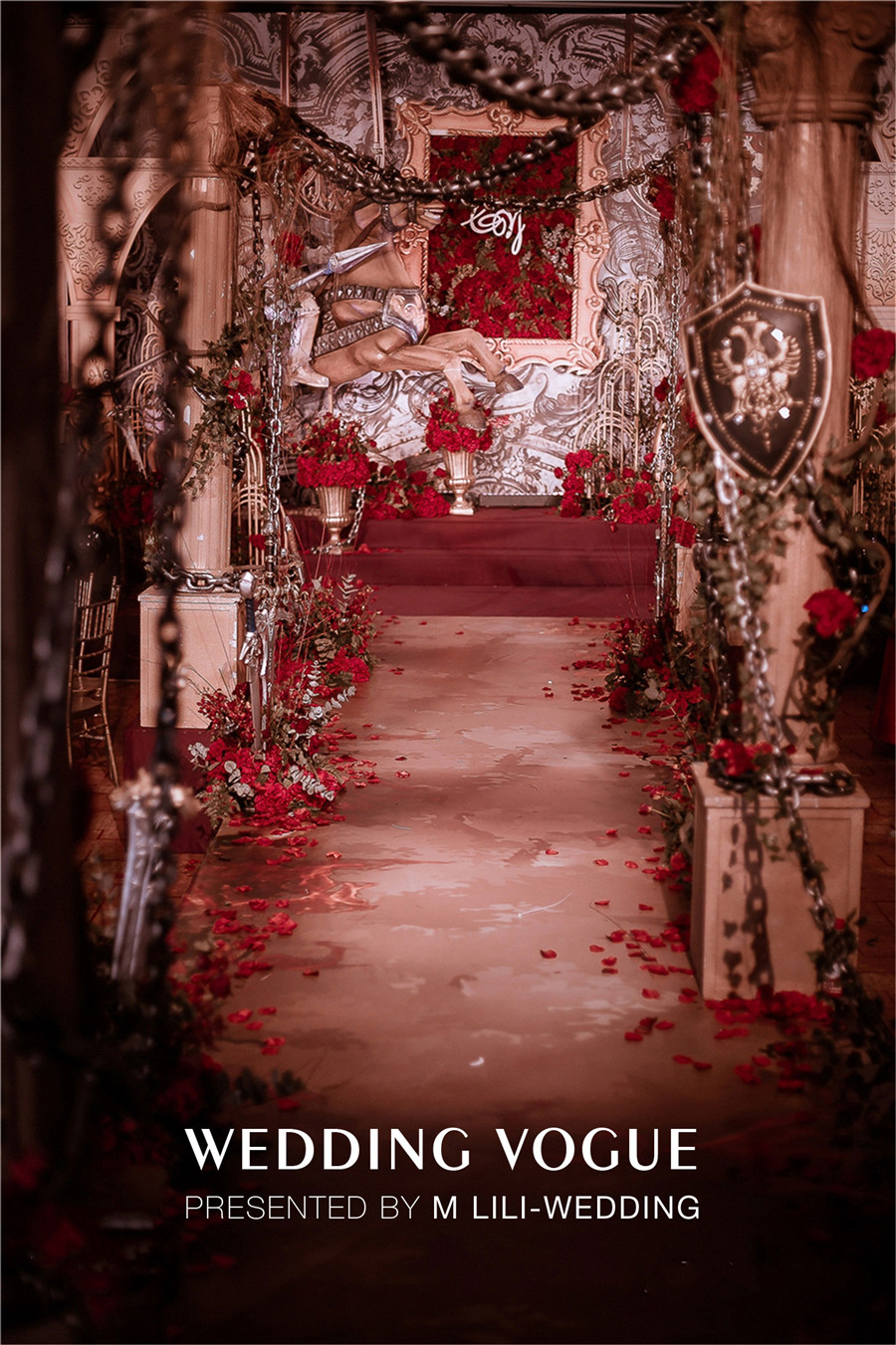 新娘和MLILI曾有过一段渊源,因此对MLILI完全信任,并且有一种执念。对于主题,一开始新郎只明确了黑色和红色的搭配,在和策划师还有设计师直接沟通过程中,新郎提出了油画、古罗马,特别,冲击感等一些模糊的概念和设想,然后在此基础上发挥。