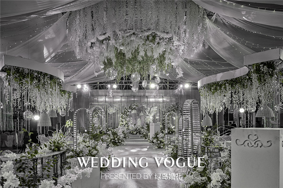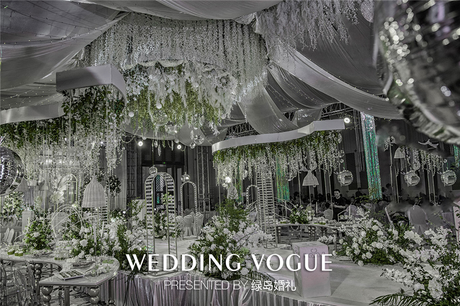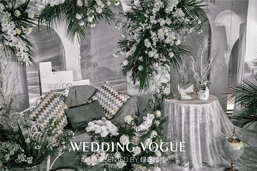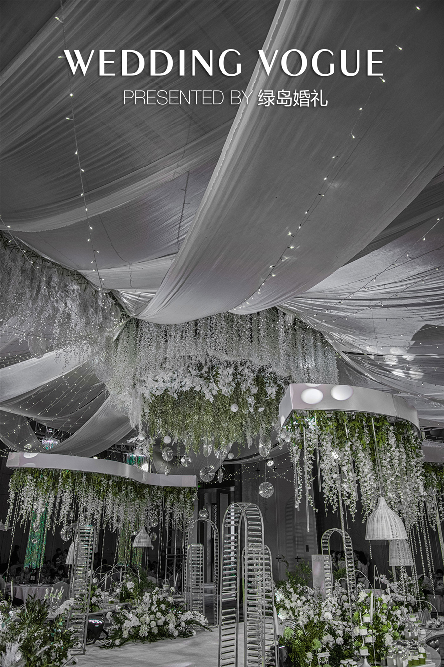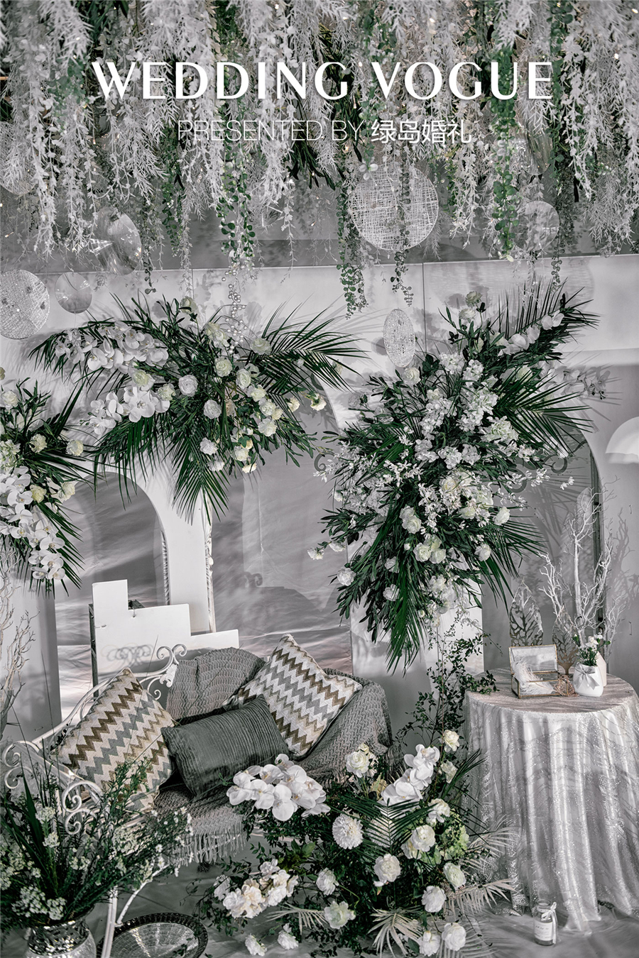 白绿经典色系加上铁艺幻境高雅精致的色调,融入相衬的花艺设计以打造多层次感,