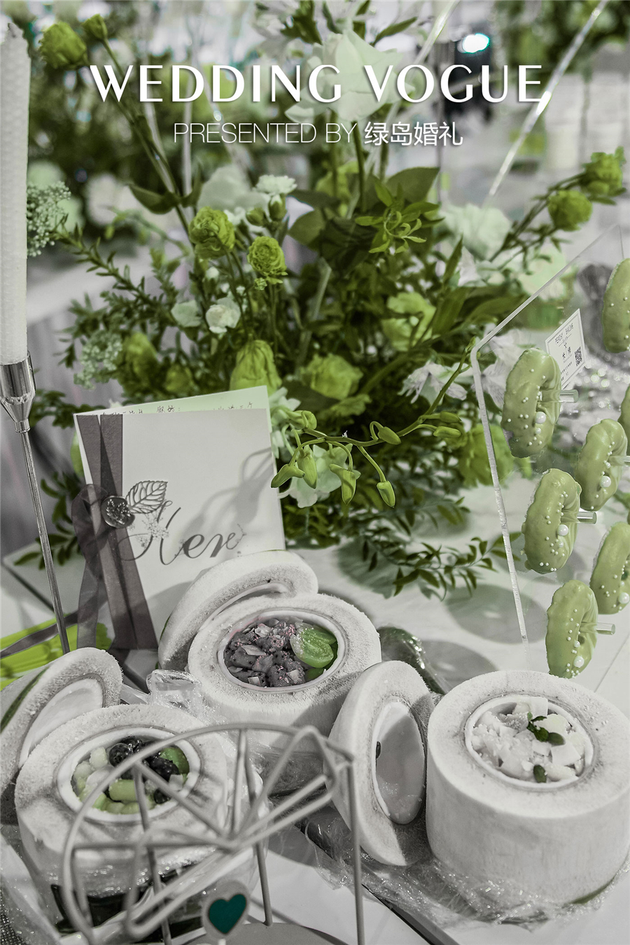 这是一场树和云的约定,婚礼主题色便定为白绿色系。