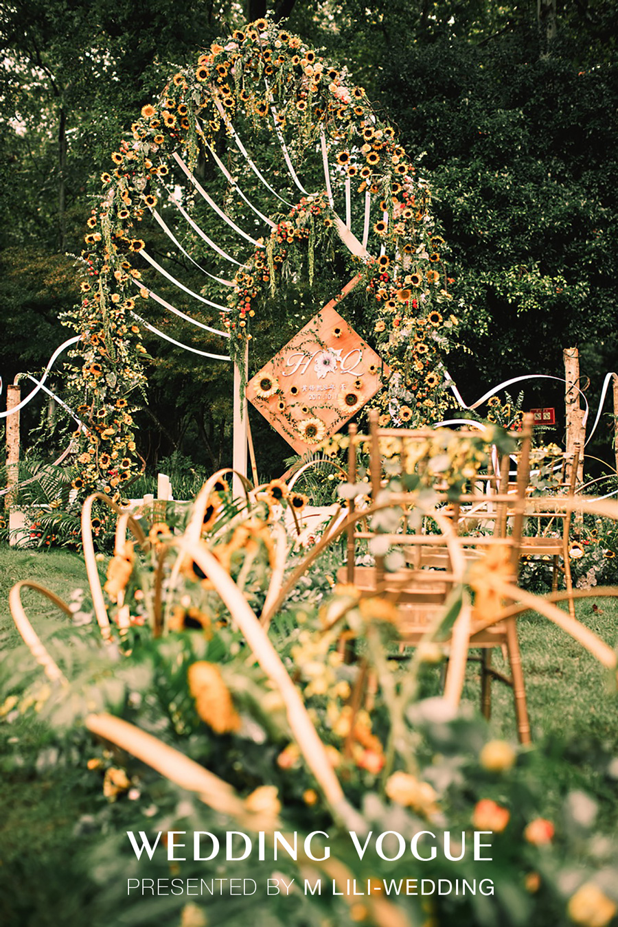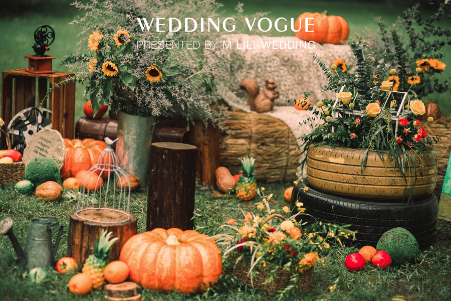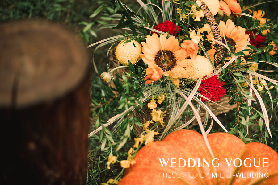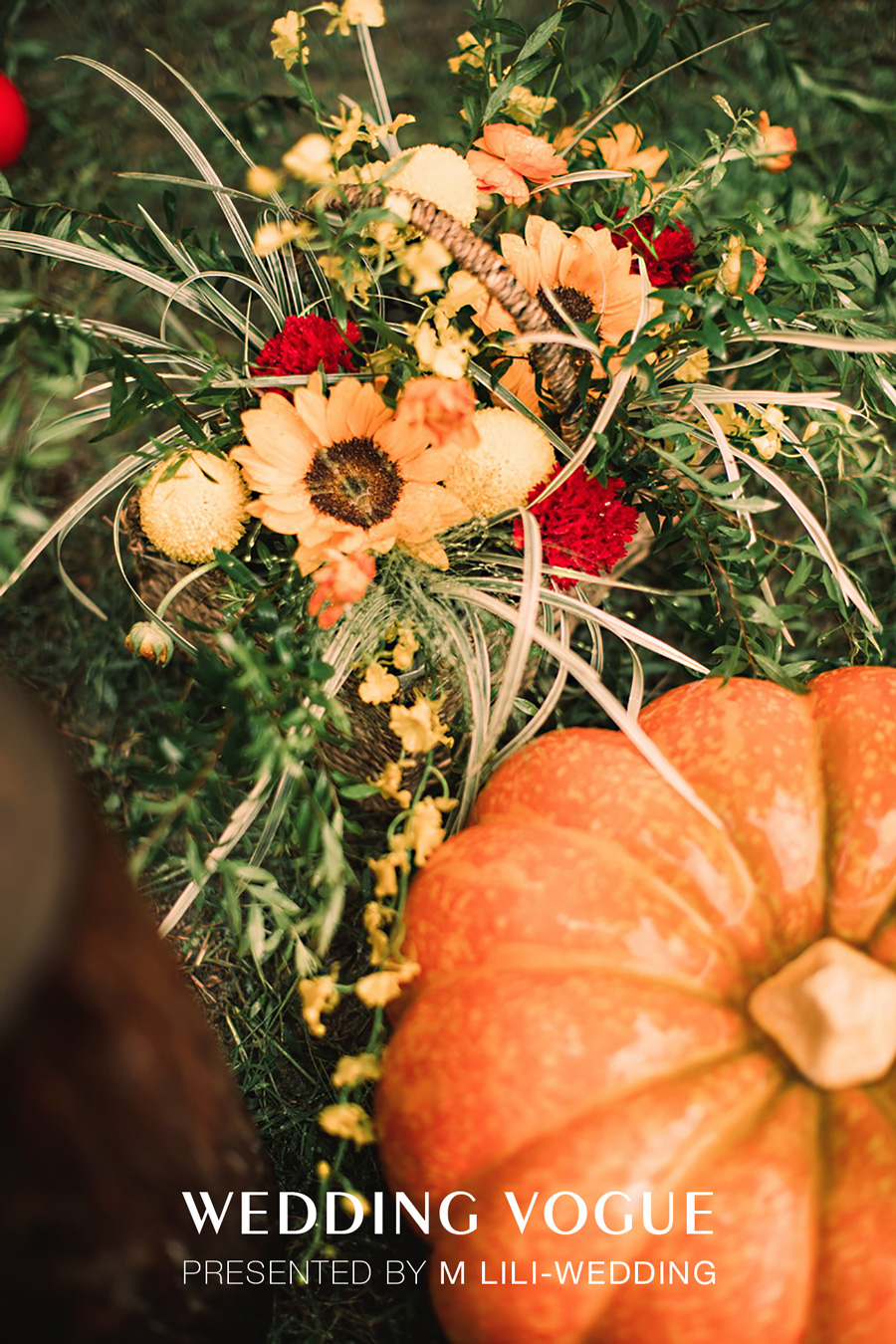 秋天是一个充满色彩的季节,在户外举办婚礼,可以借助天然的颜色,
