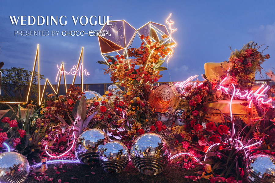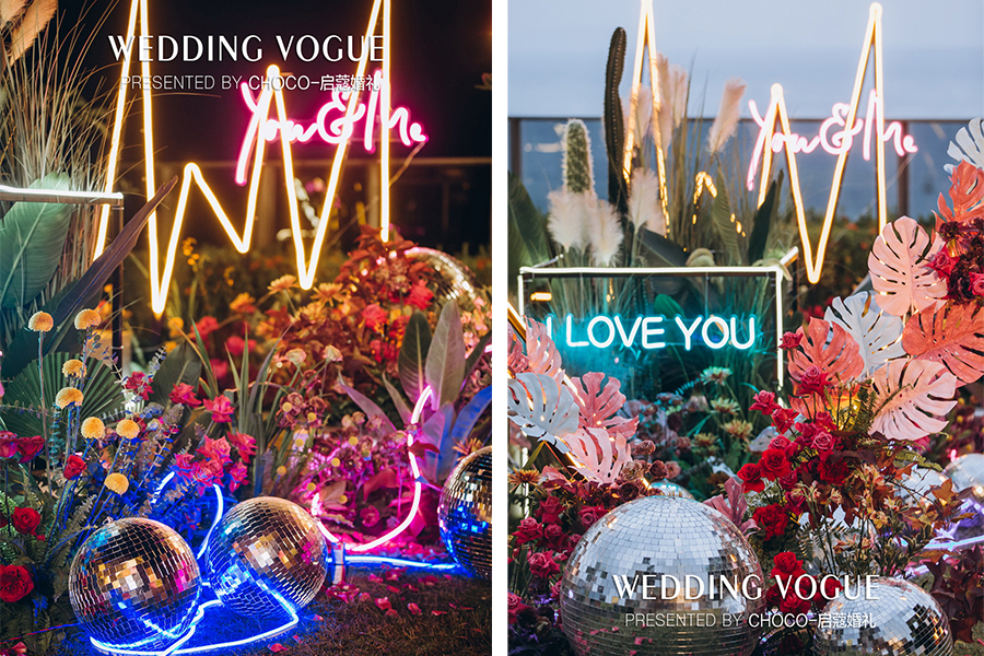 反光球、鲜花和大胆的配色让人眼前一亮,动感又不失浪漫