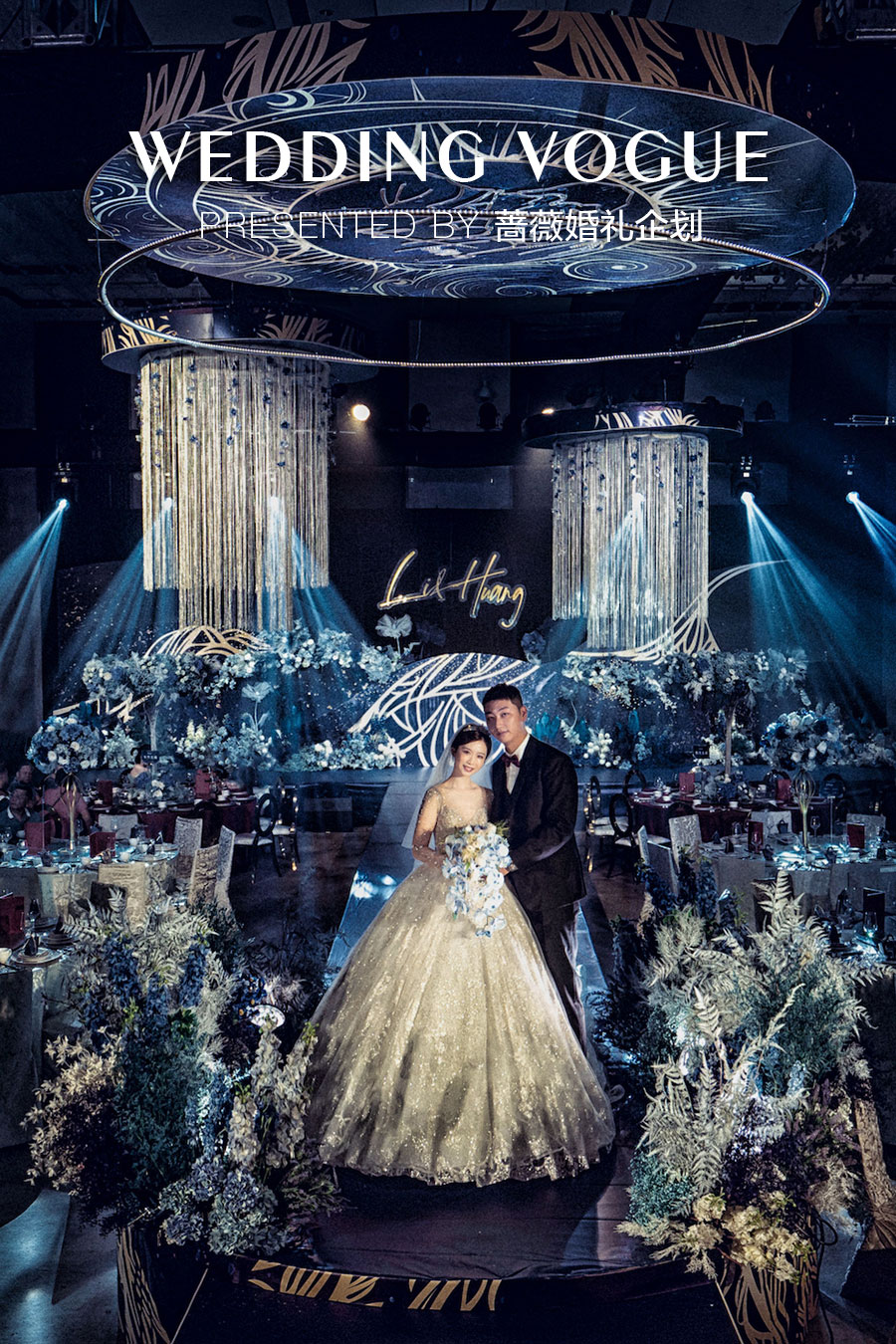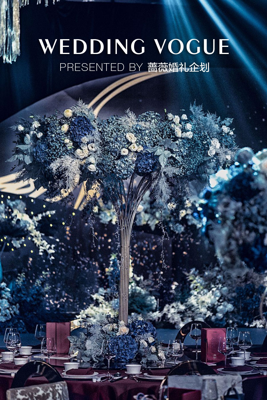 所以把婚礼主色调定为蓝色,配以饱和度,对比度不一的蓝色来相辅,一场代表永恒的蓝色婚礼就此到来……