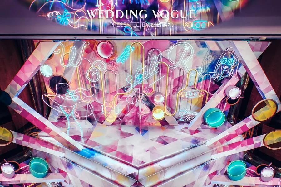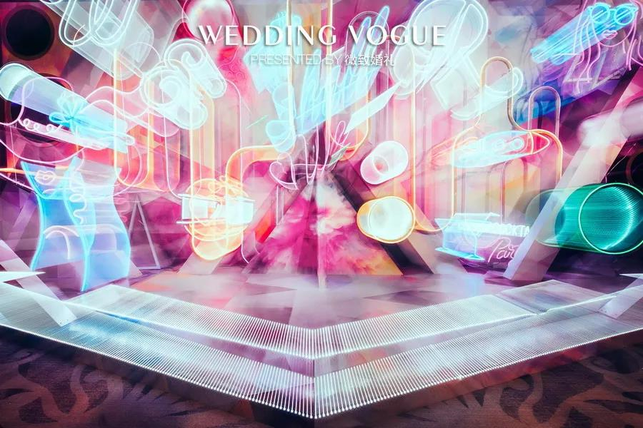 婚礼装饰不一定非得常规、严肃,考虑在婚礼中中添加一个霓虹灯类的俏皮元素,