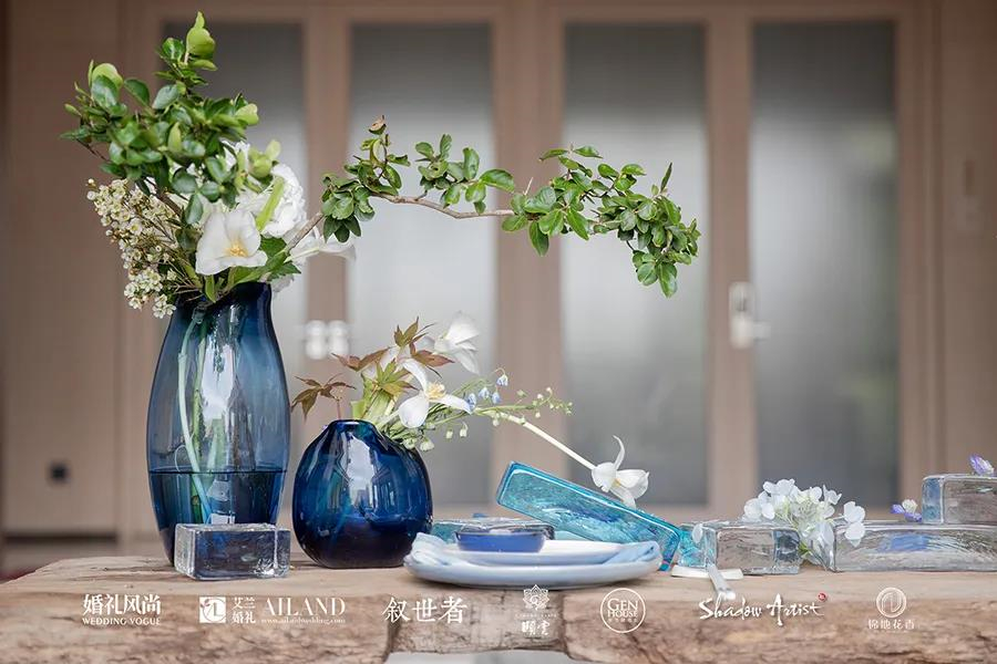 婚礼上最常出现各式各样的玻璃器皿,它们是不可缺少的餐具,也可以只是单纯的既别致又自然的婚礼装饰。