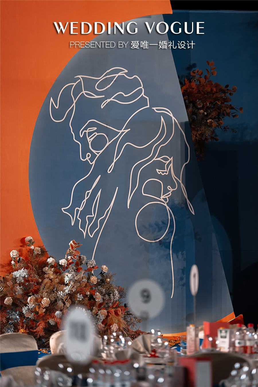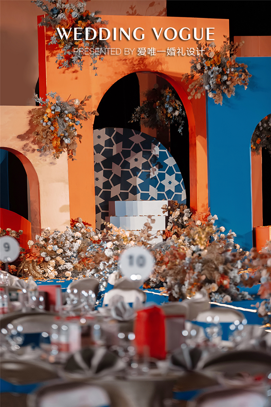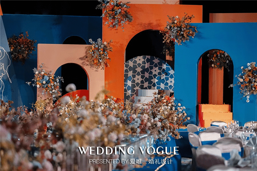 对比色块之间的碰撞交融,将那份带有活力的艺术留在婚礼的舞台上。
