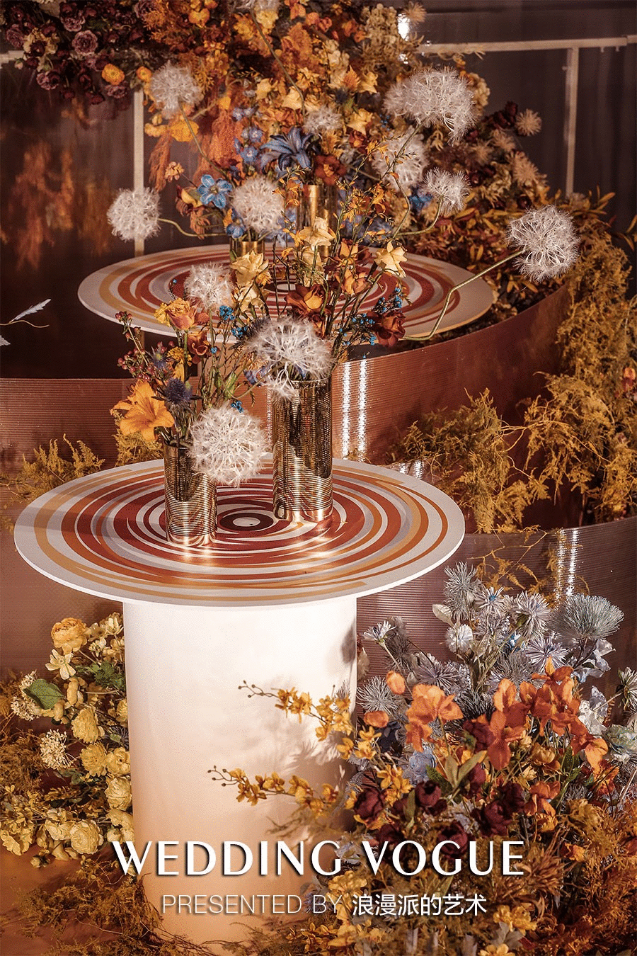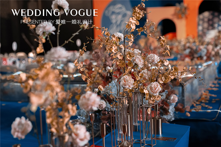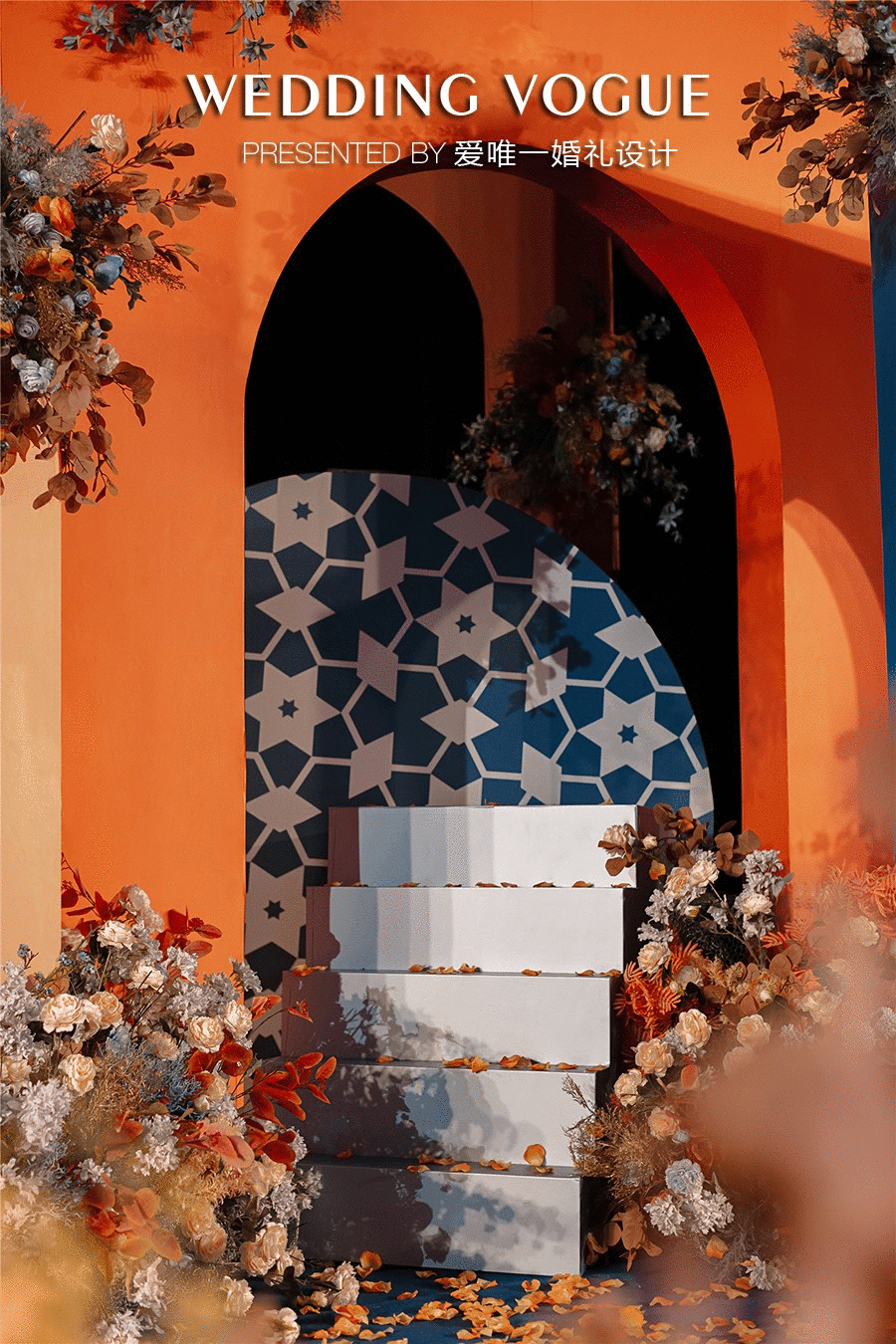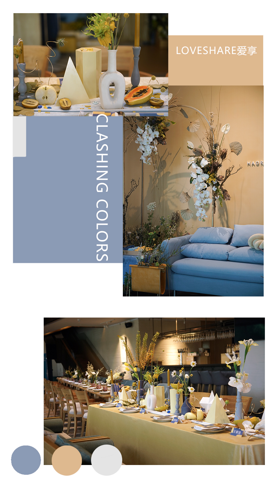 对比色块之间的碰撞交融,将那份带有活力的艺术留在婚礼的舞台上。