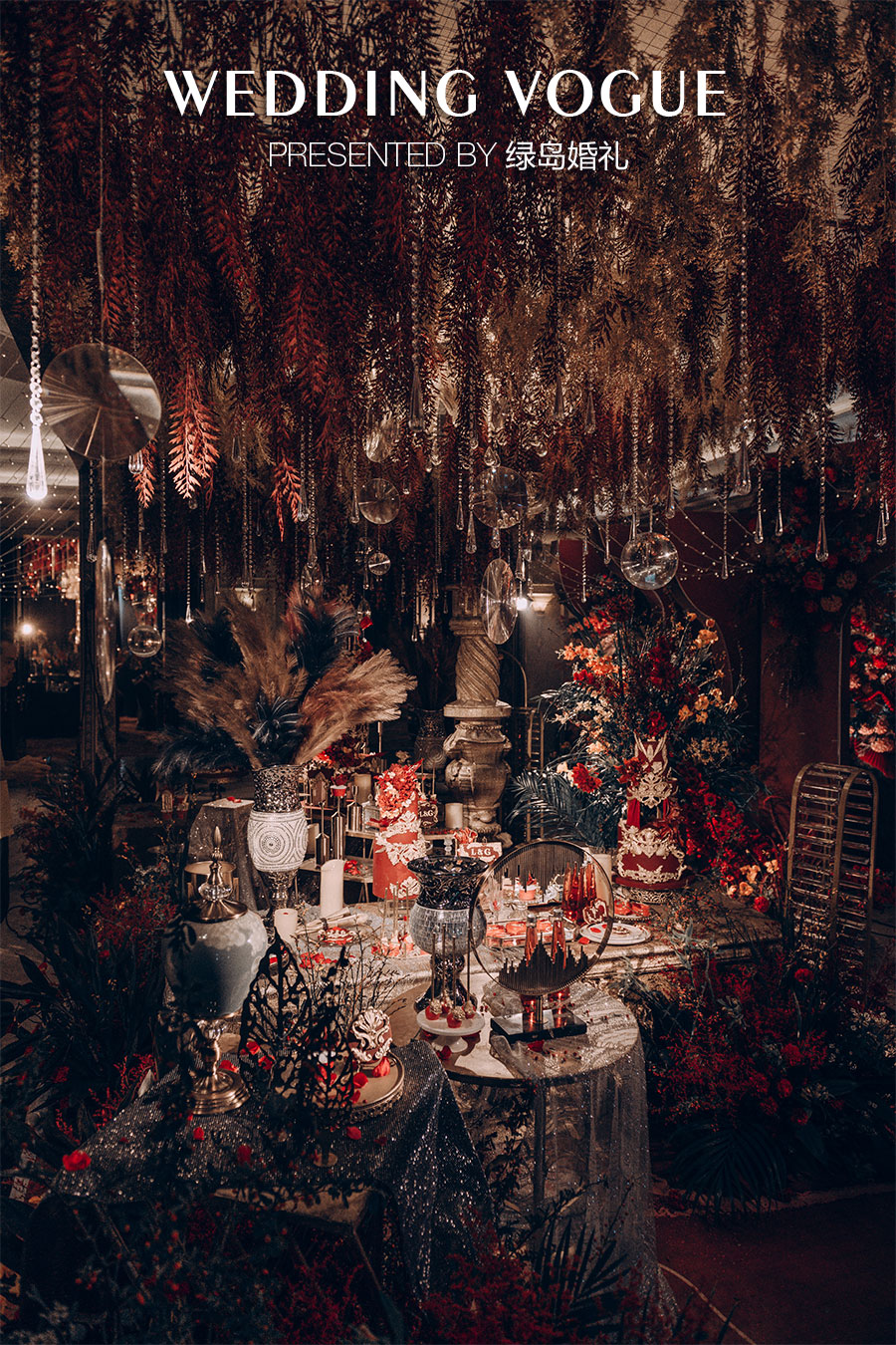 黑金的奢华感加上红色的炙热感,一场见证爱的梦中婚礼,奢华又大气,既热情又精致。