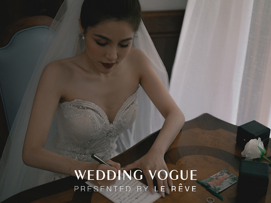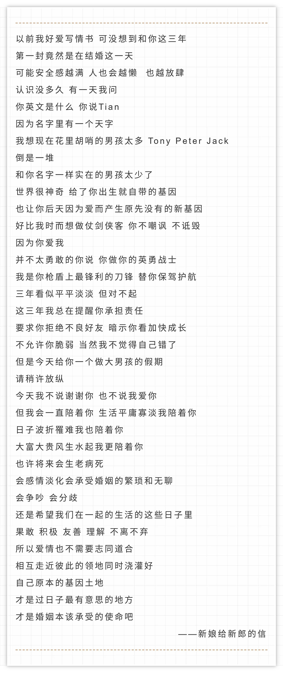 婚礼那天,早早起床。梳洗毕、化完妆,新娘静静地给新郎写了一封信。