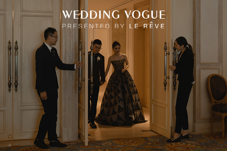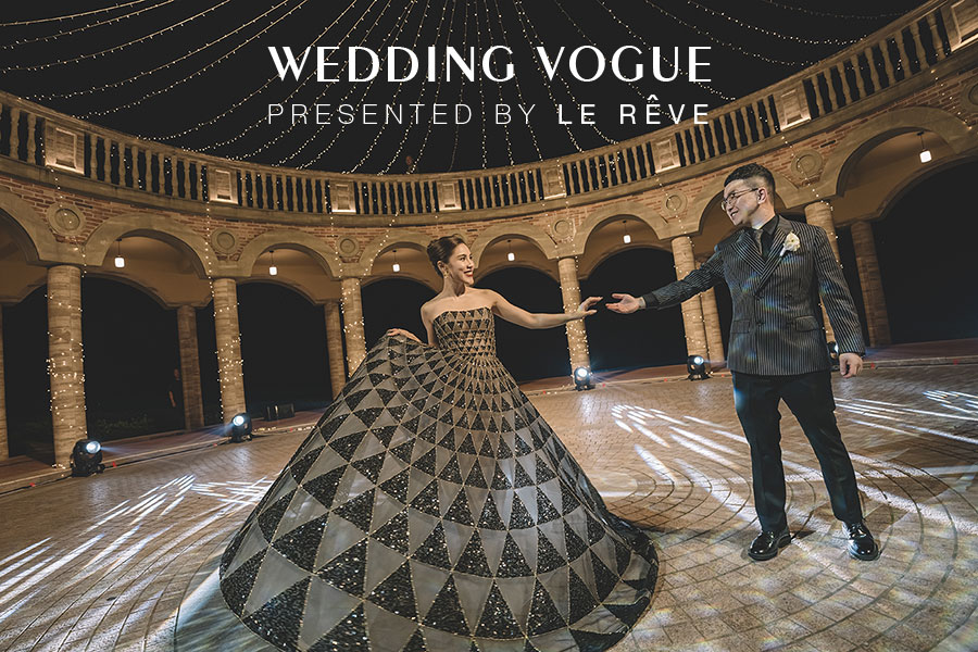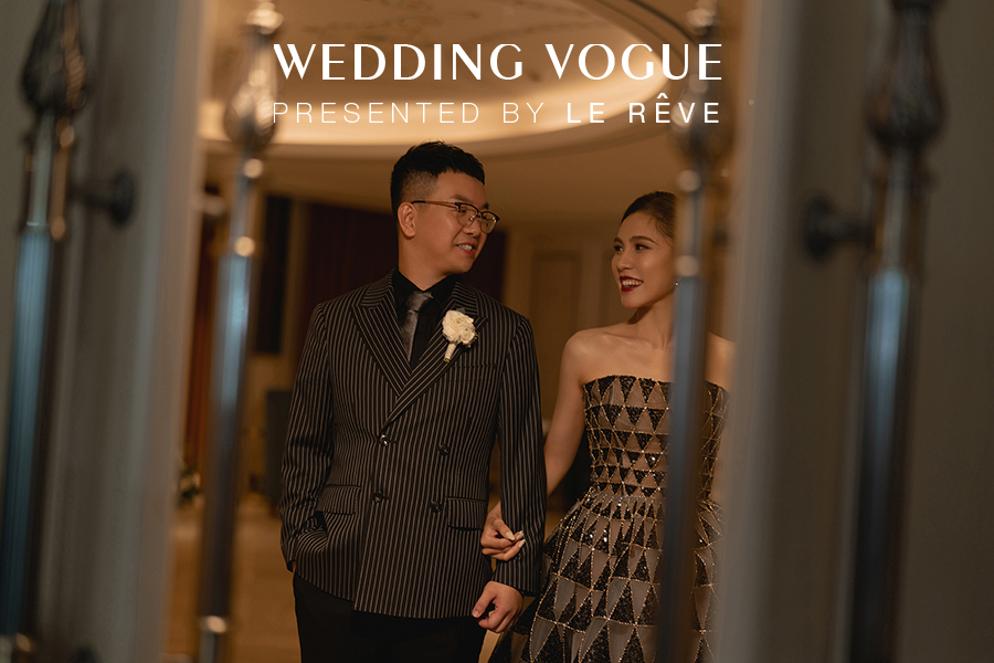 他与她盛装出场,着与夜色一般迷人的浅灰。