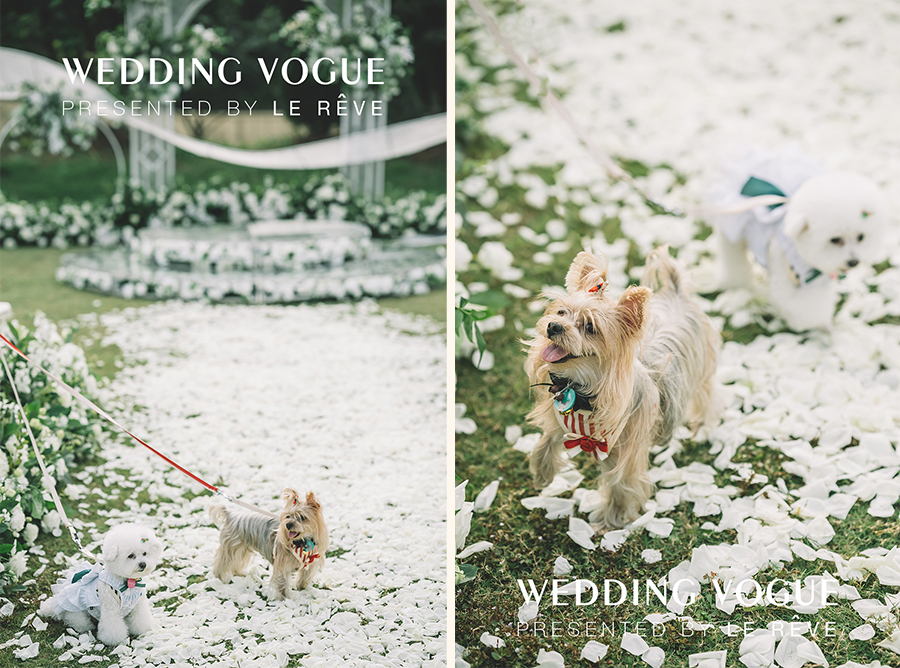 对了,新娘的两只小狗狗,也是婚礼上的一道美好风景。