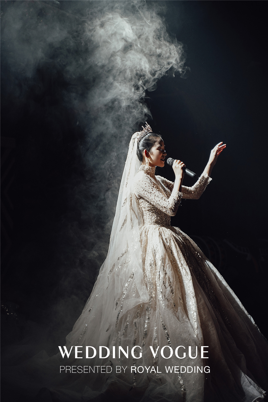 整场婚礼的风格独特,色彩浓烈,仪式部分因为新娘的歌声和新人告白的誓言真挚打动现场的宾客。