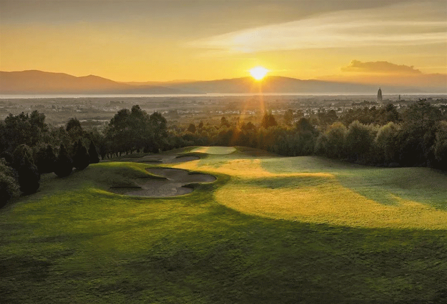 这里是能承办国际赛事的标准高尔夫球场,酒店毗邻佛教圣地崇圣寺三塔。整个球场紧靠着苍山,站在球场的高地可以远眺洱海。大片维护良好的绿色草坪在蓝天的映衬下给这片风景带来了不一样的色彩,是非常难得的草坪婚礼场地。