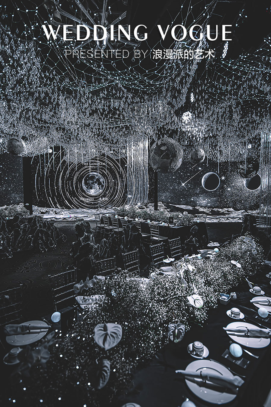 2020新天地朗廷首届婚礼秀,浪漫派 X VERA WANG首次合作,高定婚纱与沉浸式婚礼布置完美融合,延续“品牌源自品位,浪漫派源自艺术”的品牌理念,实现宇宙与个体的美学碰撞,呈现一场由婚纱闪耀的美与引力宇宙的碰撞艺术。
