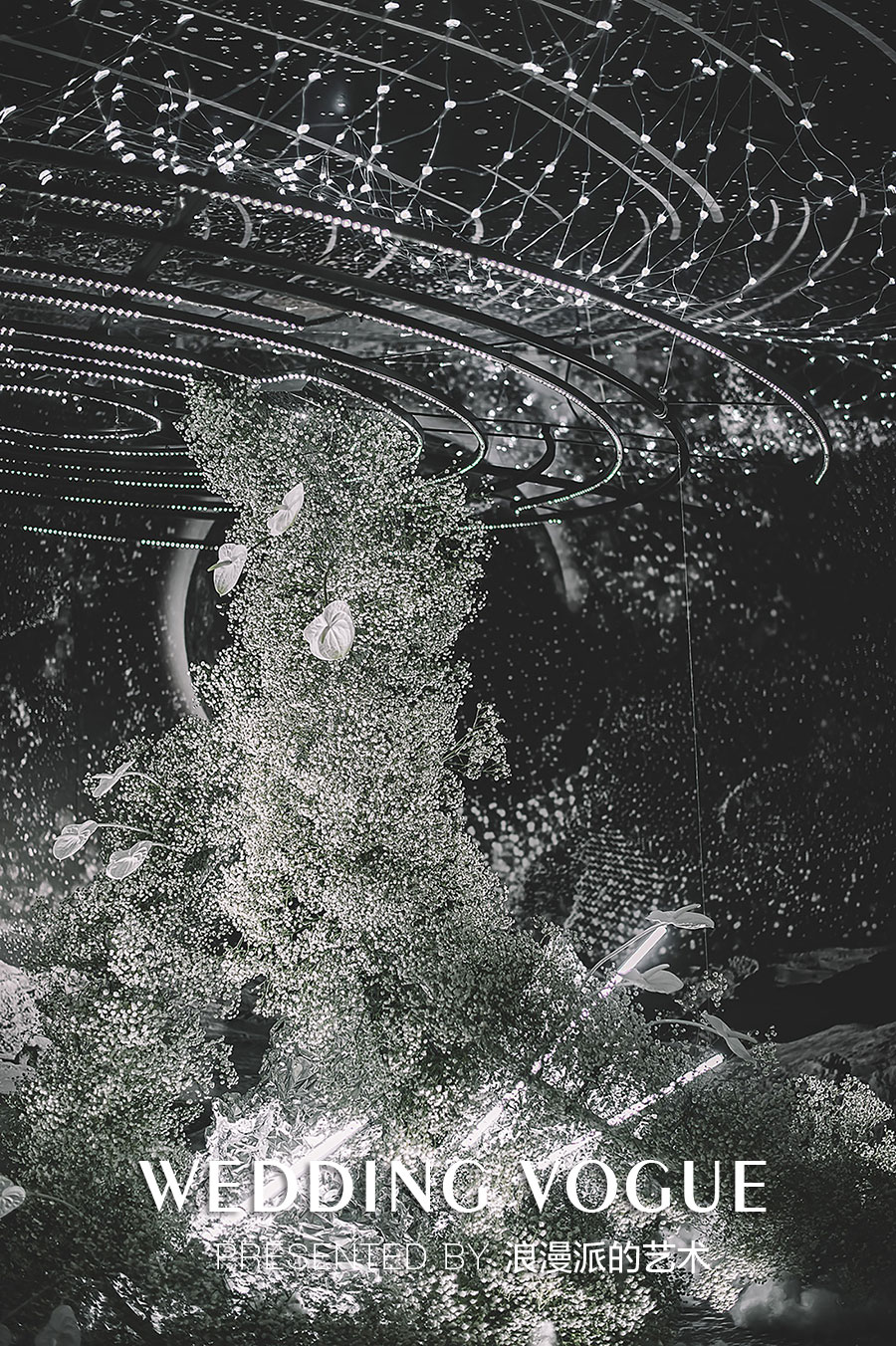 夹缝中的生命,带给了婚礼秀新的生命力,满天星化作银河钻入星云中,从渺小的萌芽到延伸至银河从无到有,引力奇点的魅力有迹可循。