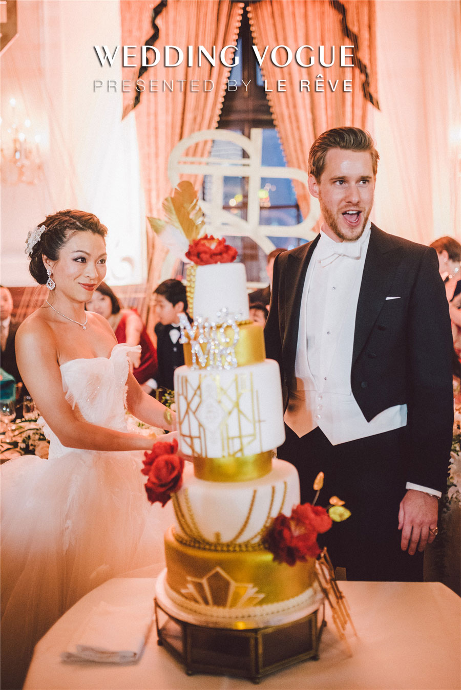 正式的婚宴延续纯西式风格,京玺国际采用经典的ArtDeco风格,在复古中加入几何图形等设计元素,营造一种上个世纪美国上流社会的宴会氛围。