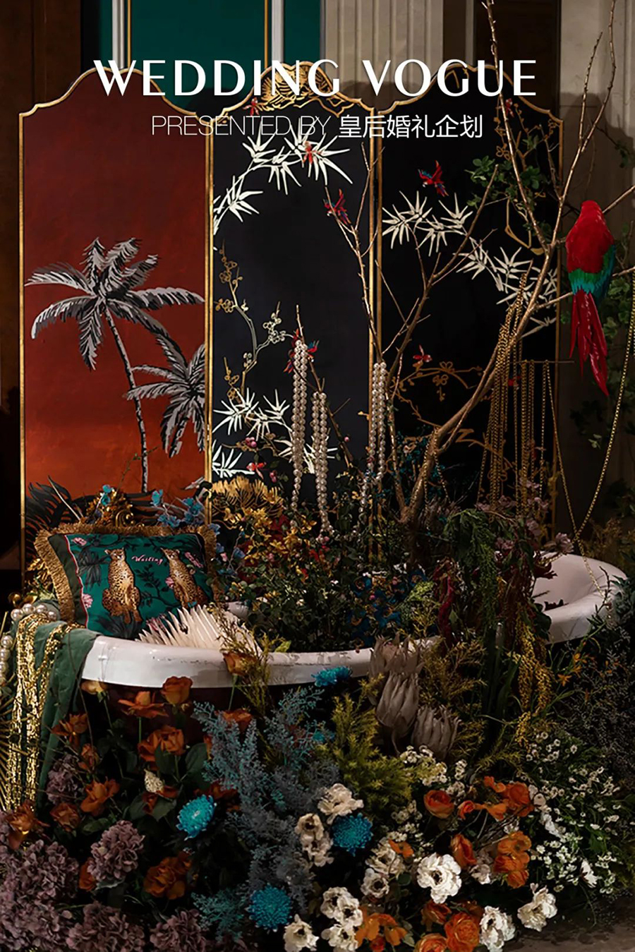 如同法国宫廷浪漫唯美的洛可可艺术,在复古奢华的极繁主义的秘密花园中,拥有色彩明艳的花朵、奇珍异兽、古董钟摆、珍稀瓷器……