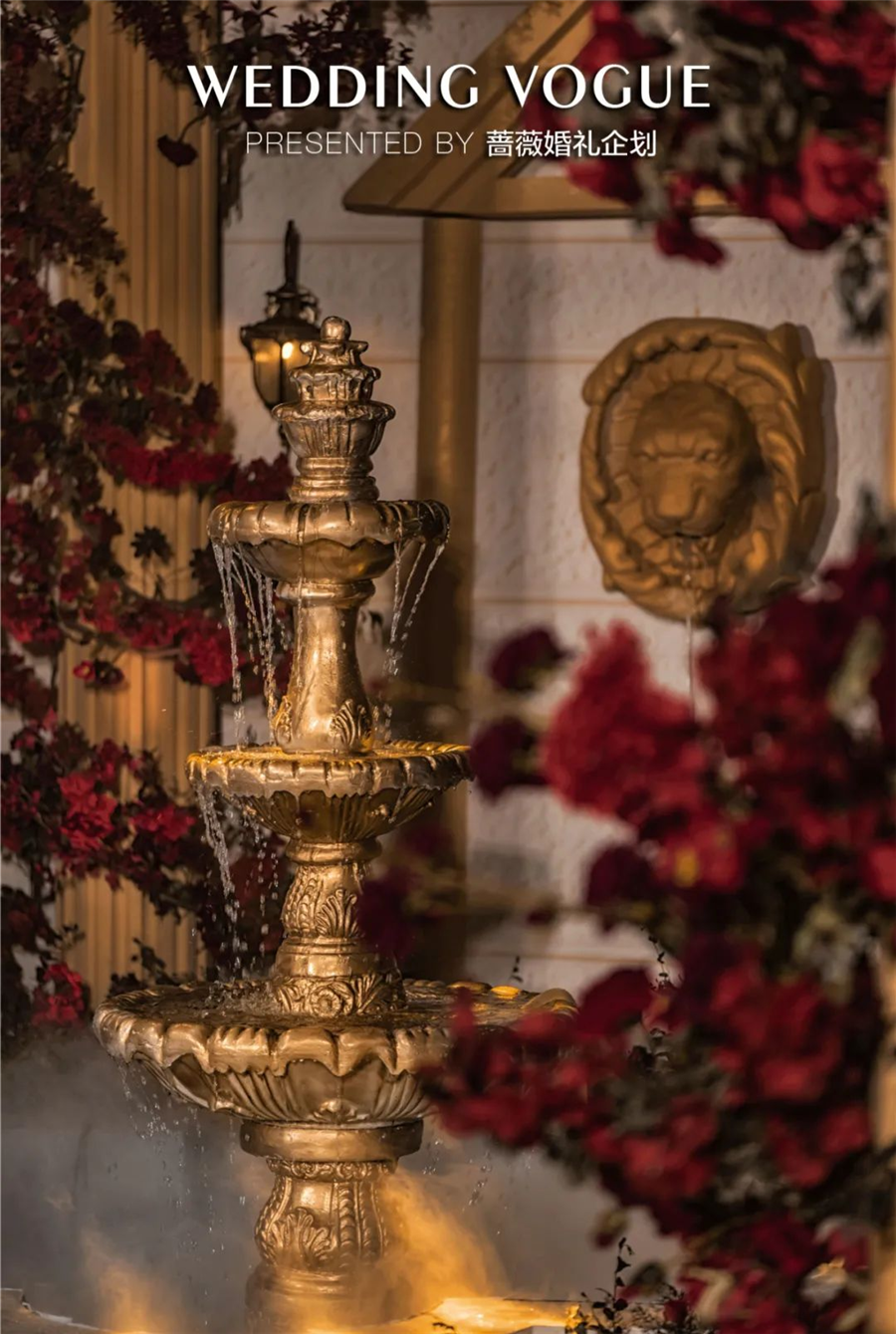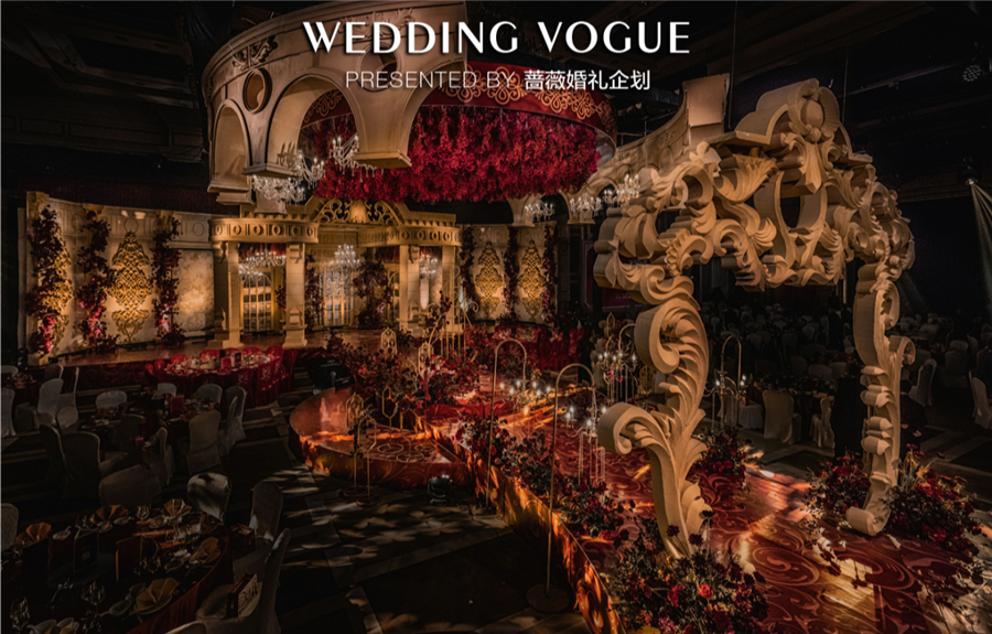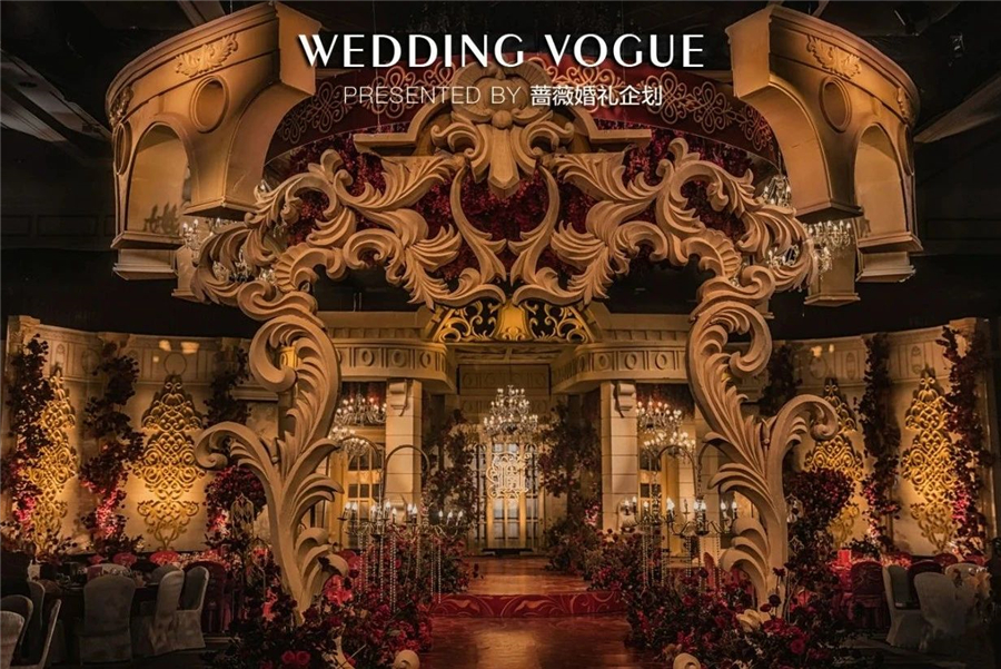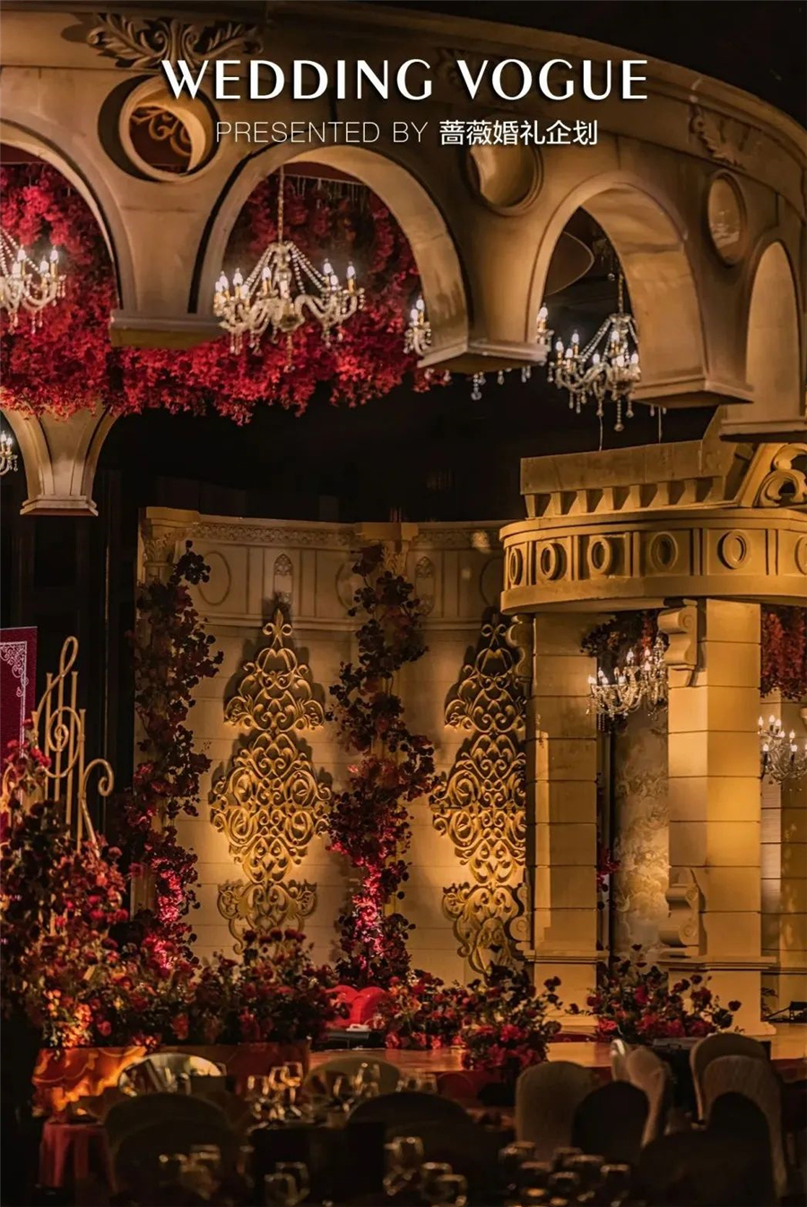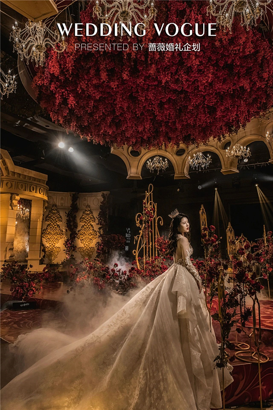蔷薇婚礼设计以缪斯女神的美丽为灵感,配以象征爱情的红玫瑰,创造了这个美丽的“宫廷花园”。