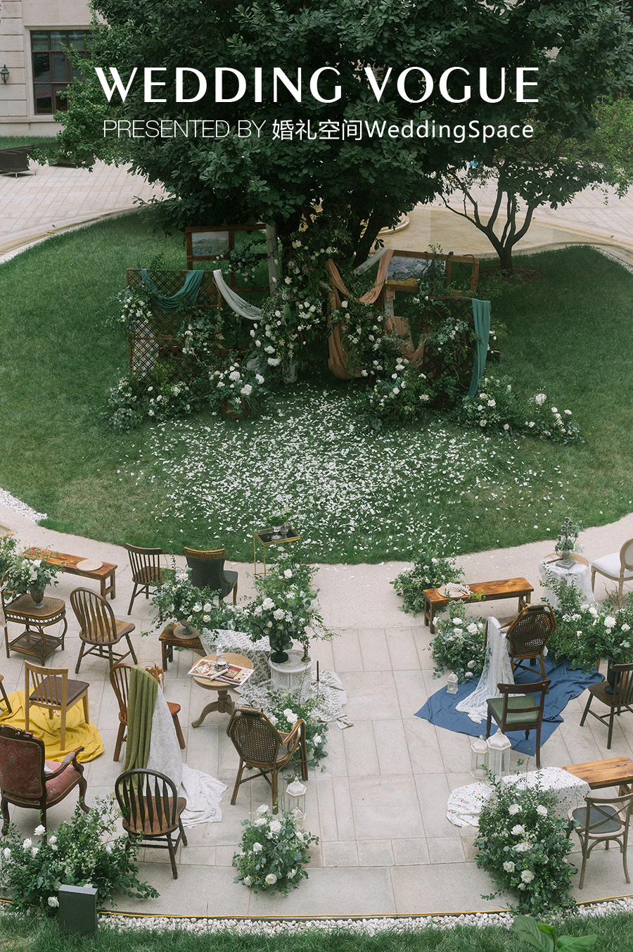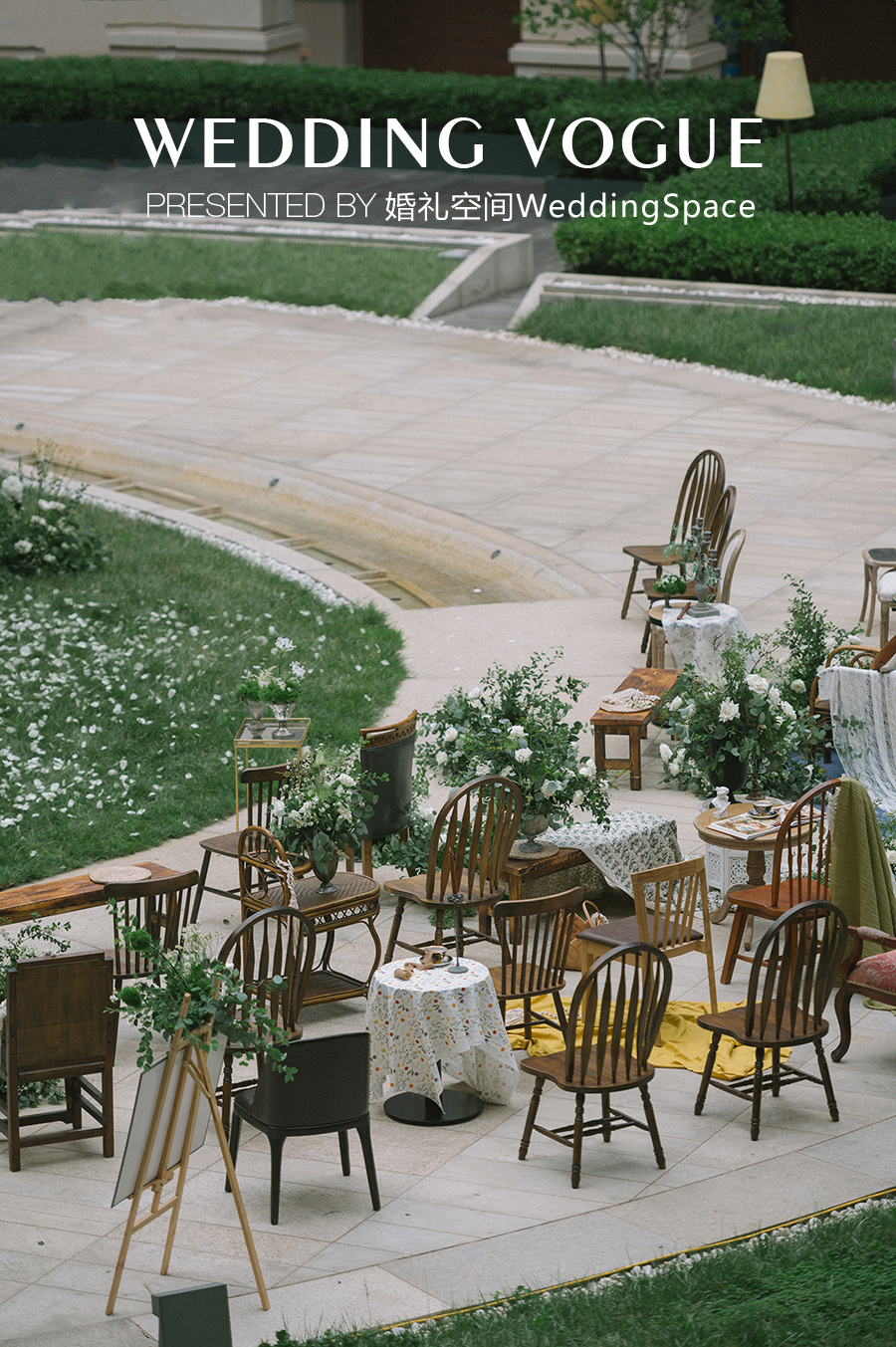 风和日丽的下午,在被精心布置过的春日花园中见证爱情,与往日的庄重肃穆不同,婚礼空间WeddingSpace更加注重轻快优雅的家庭氛围的营造。