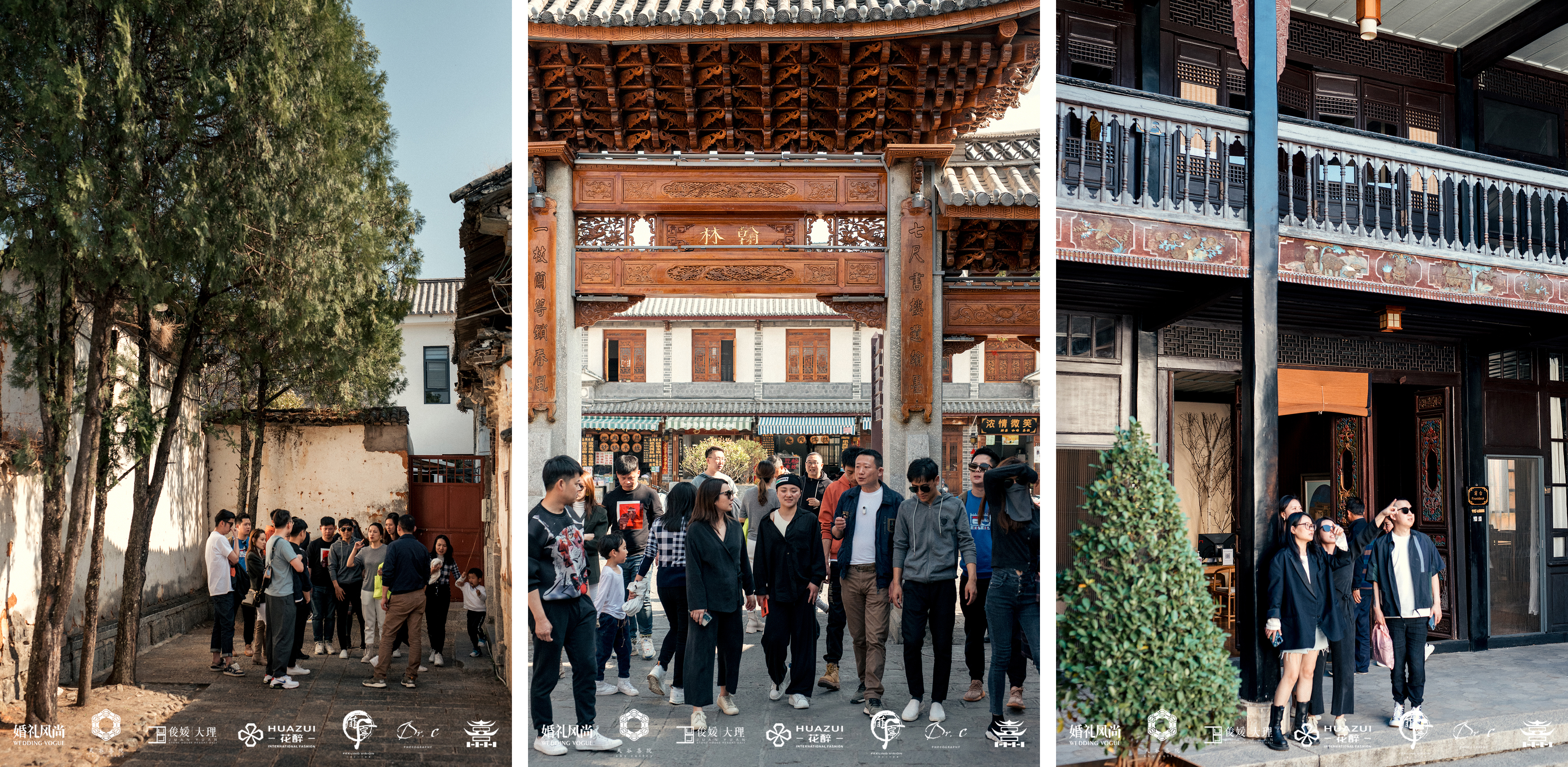 在大理旅游古镇开发有限公司的带领下婚礼风尚及合作伙伴一行数十人探访了多处古宅遗迹。「体面的市镇」所言非虚。旧时代建一所像样一点的住房,是值得白族人花费毕生精力为之的大事,既要符合伦理纲常的居住制式,又要融入主人对家族发展的美好期许。