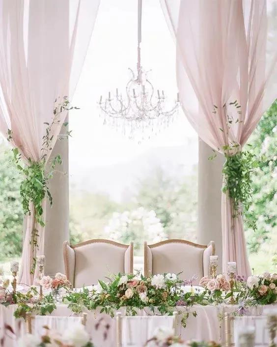 在婚礼设计中,粉色梦幻浪漫的风格肯定都做的很多,但总是会觉得缺少一定的高级感,这组配色就能很好提升质感。