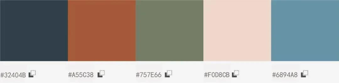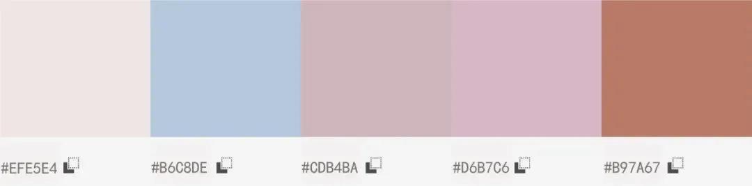 从色彩角度来说,这个配色属于高明度低纯度的配色,整体会呈现出明亮沉着的典雅感,
