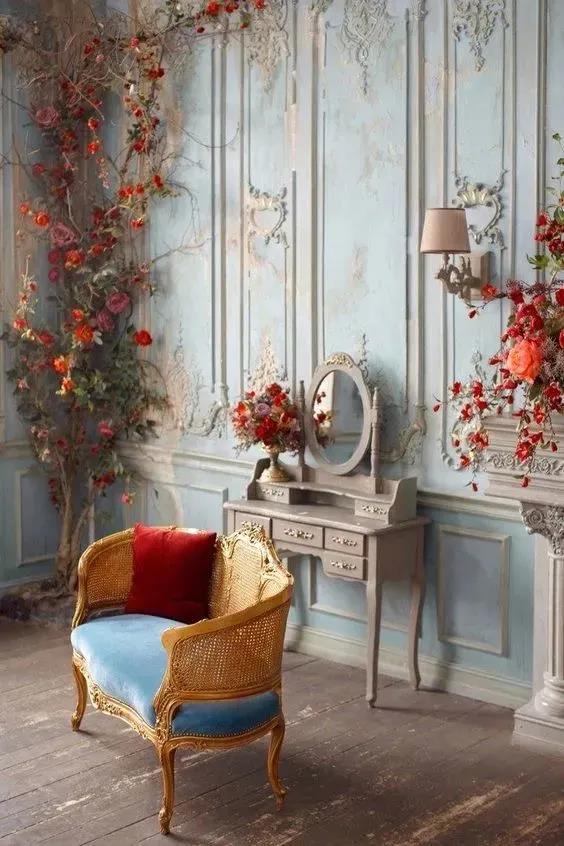 我们之所以觉得这样鲜明亮眼的色彩不够古典,是因为我们的认知有很大一部分来自于以前的电影,但很多电影里的墙纸其实都是褪色的。