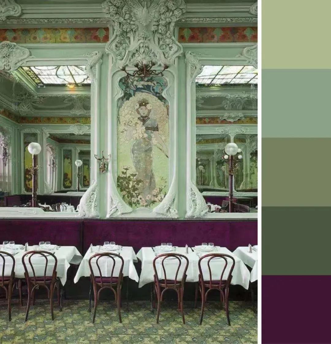 而酱紫色纯度较高且只作为小面积点缀,这种在面积上的不协调配色反而使对比色变得协调。