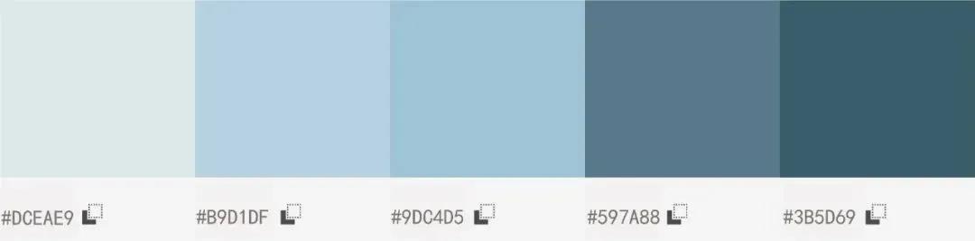 蓝色作为一种冷色调,很容易让人联想到大海、冰川,同时也会给人一种距离感;而白色作为一种中性色很好地中和这种距离感,也不会破坏蓝色本身自带的高级感。