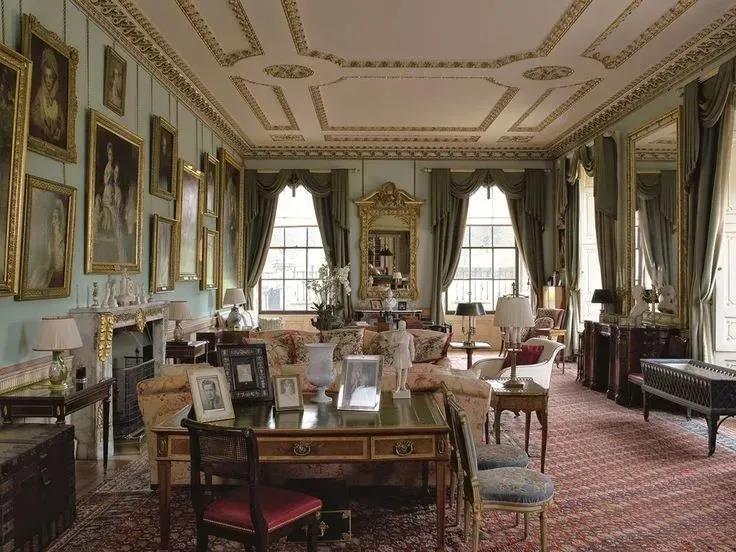 整体风格既少女又典雅,再以橘色金边的沙发,中和粉色过于轻柔的气质,以展现爱玛那个时代的贵族品味。
