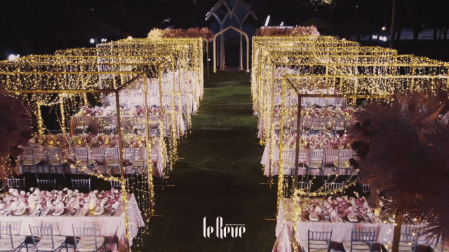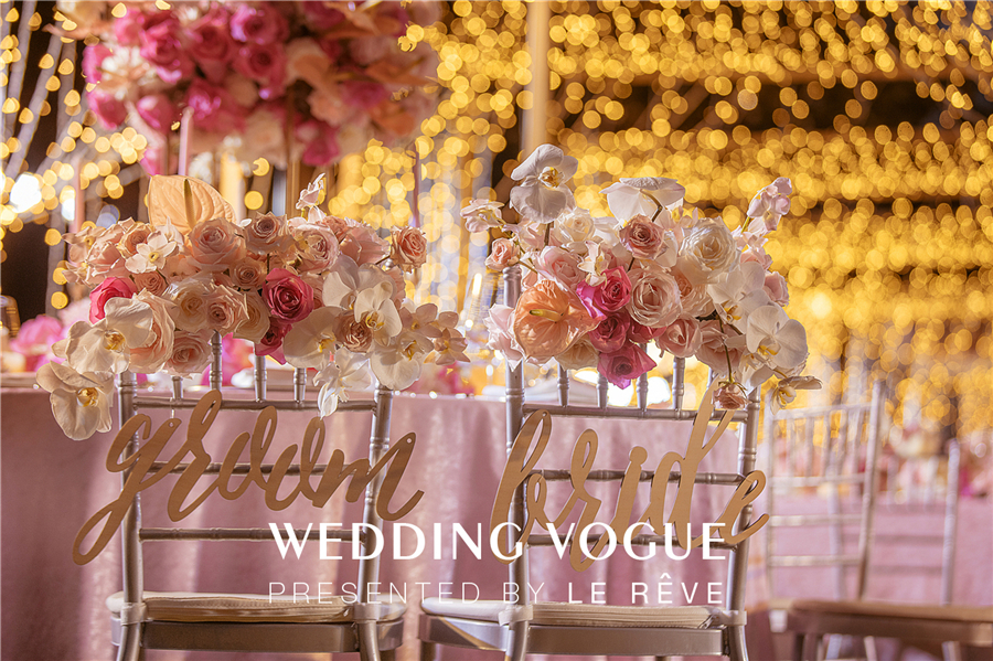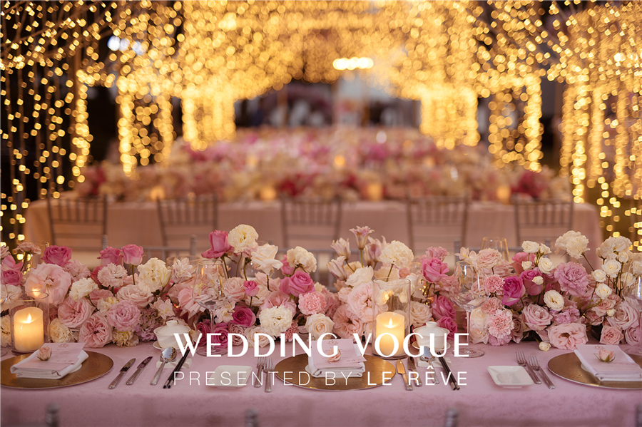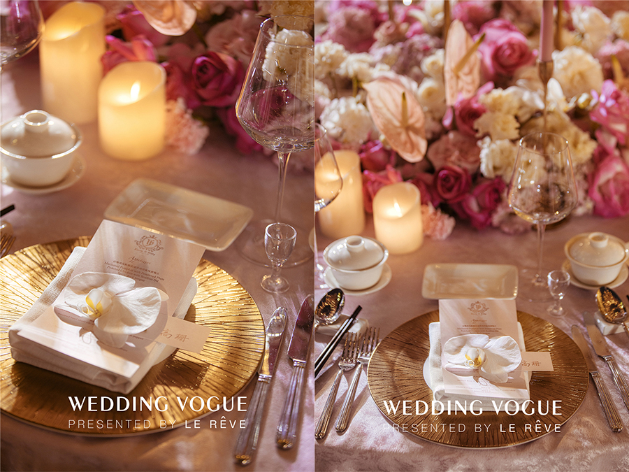 温柔甜美的粉色里,添了一抹优雅高贵的金色,与这个浪漫的夜晚相辉映。