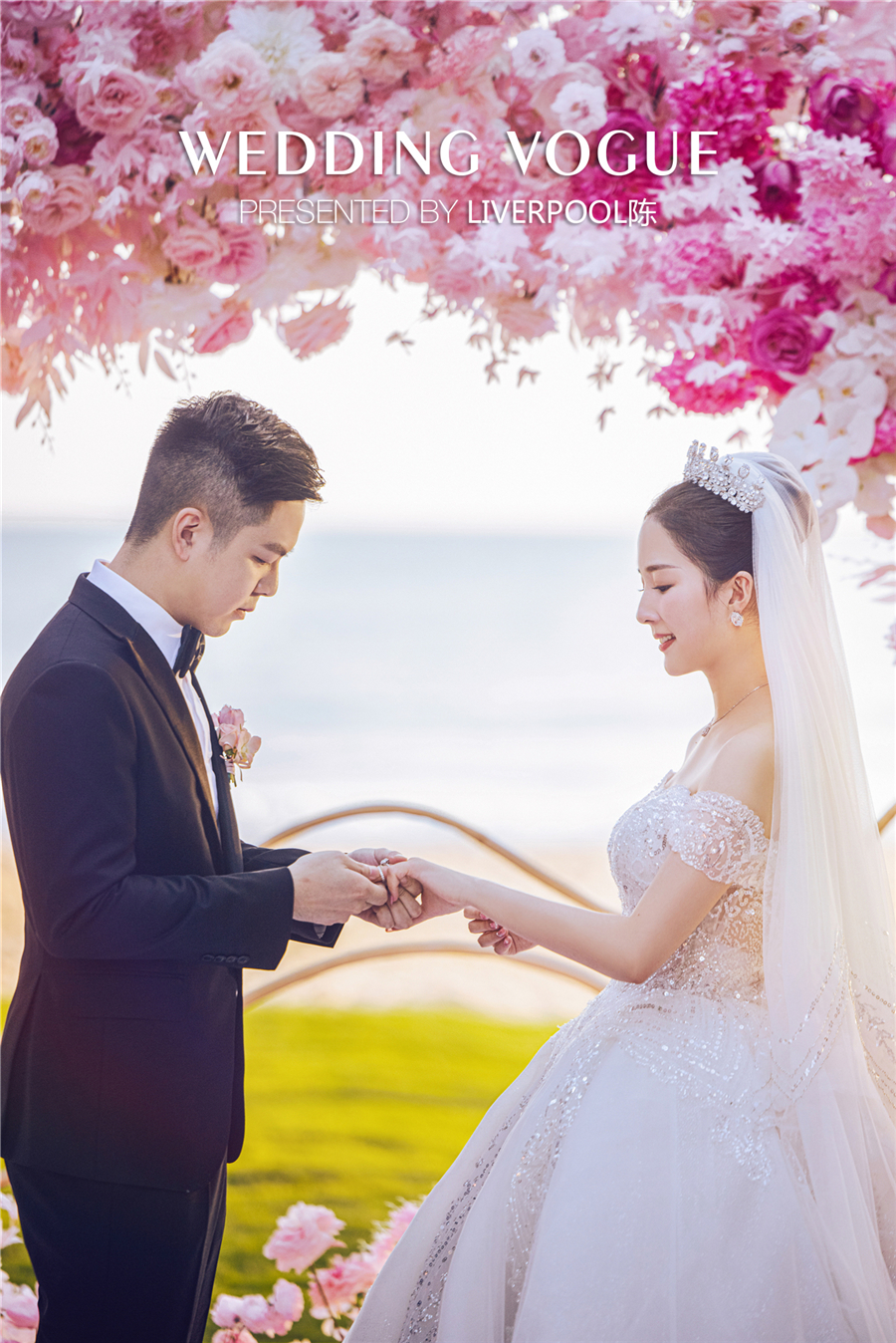 不仅和海岛婚礼的气质呼应,也在无声诉说着浪漫—— “海浪托起日月星辰”,是他们,也是他们的爱情。