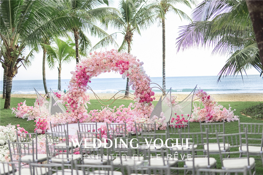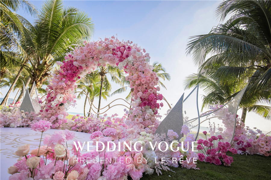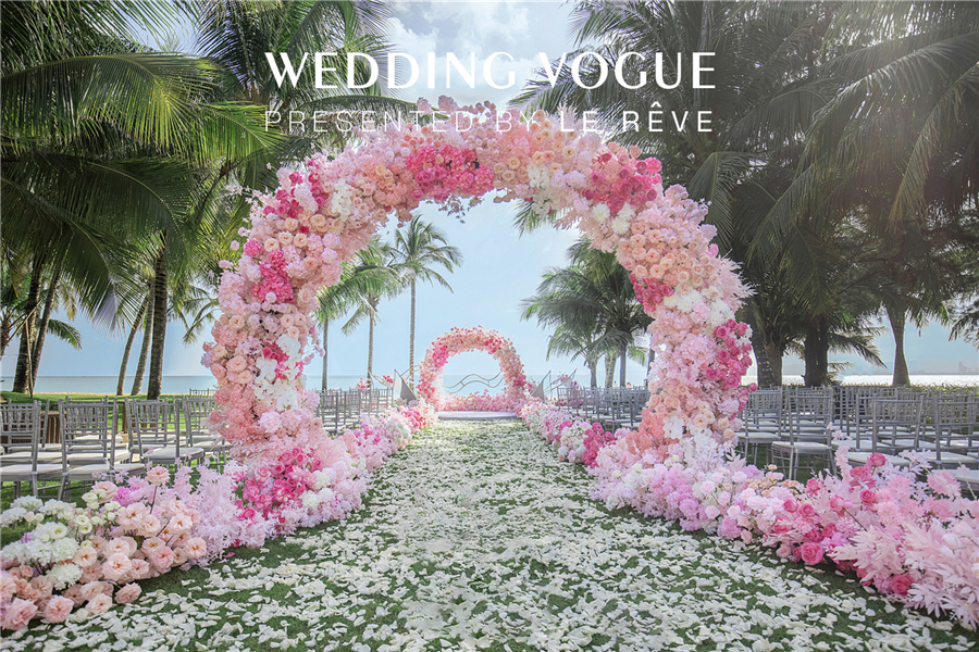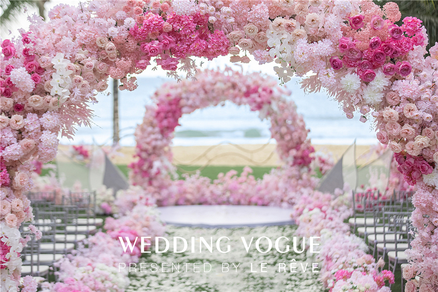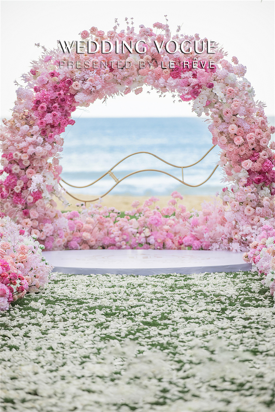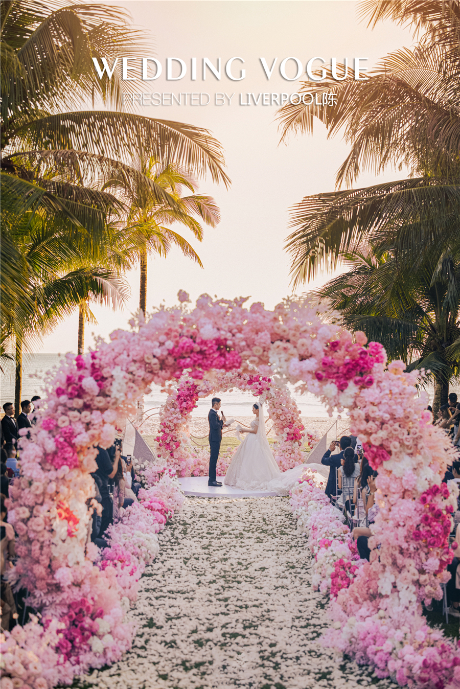 粉色、圆拱门、花团锦簇,这是新娘梦想中婚礼的模样。