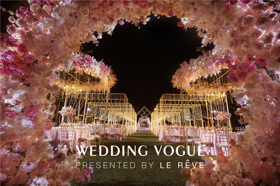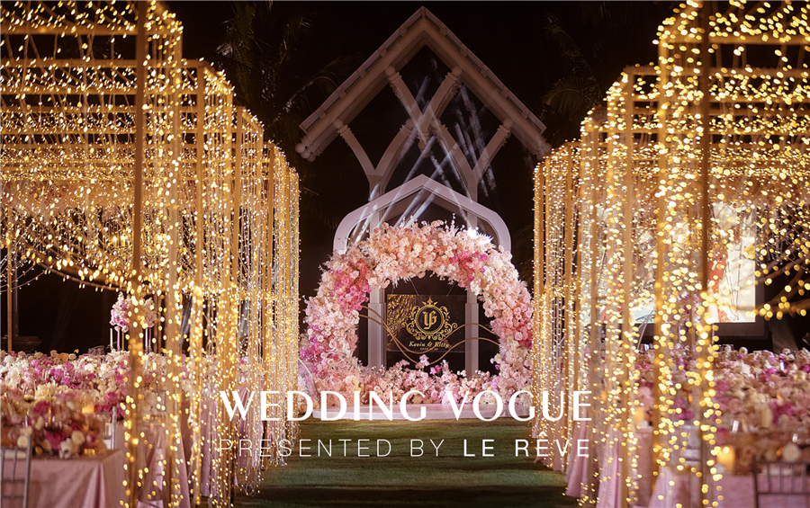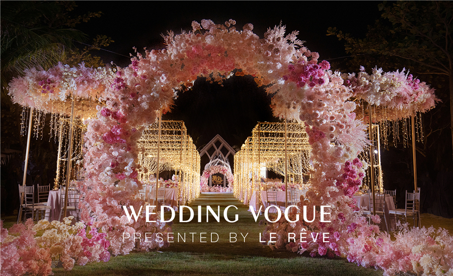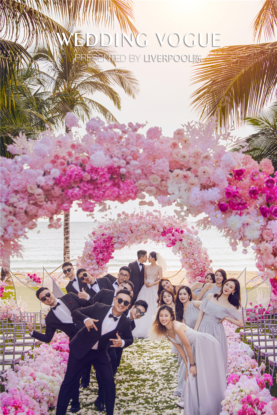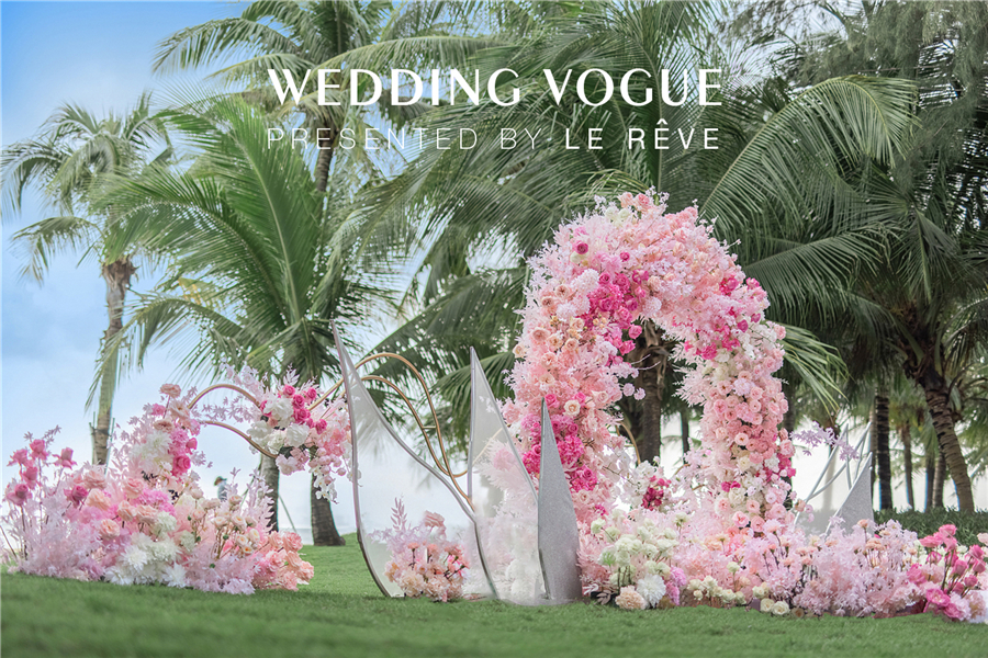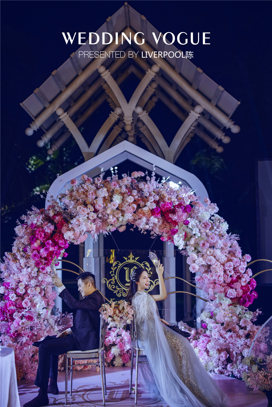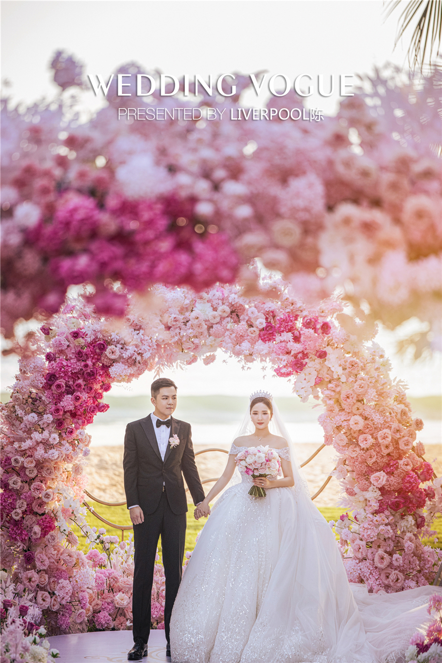 粉色、圆拱门、花团锦簇,这是新娘梦想中婚礼的模样。