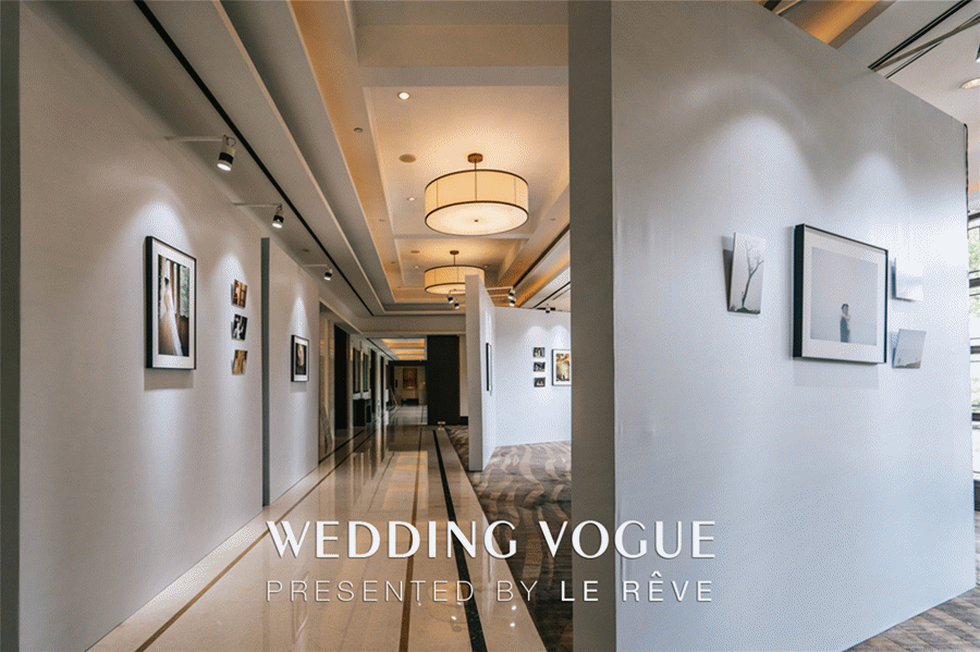 在酒店的走廊上,还特别陈设了一个影像展,展出新人的婚纱照和影像。
