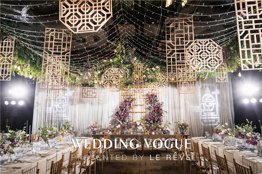 凉亭与珠帘,亦是中西合璧的巧思。国风之中,不乏清新的少女感与婚礼的甜蜜。在整体氛围中不显突兀,糅合得恰到好处。