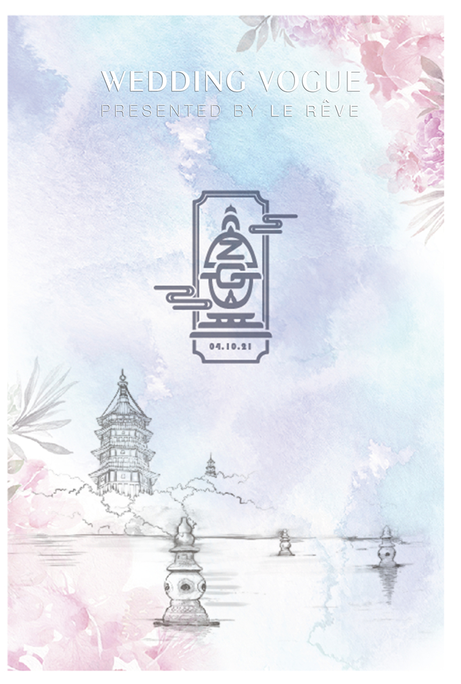 插画师将它放入了美轮美奂的请帖中。它点题了“西湖”之名,也赋予婚礼别样的意蕴,更是一处中西合璧的绝美浓缩。